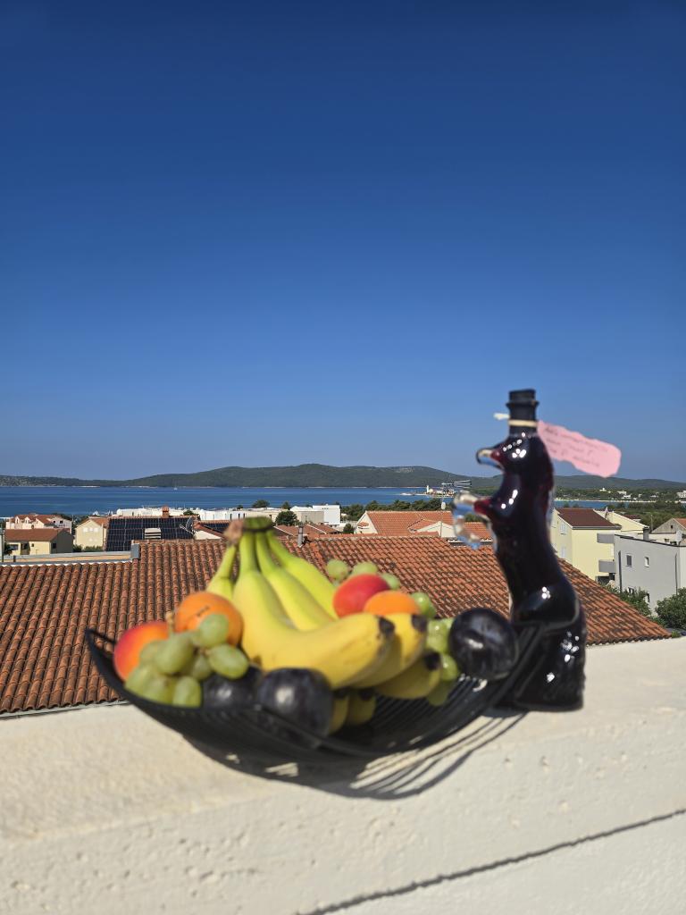 Fully and modernly equipped apartments in a quiet part of Brodarica, located 5 minutes' walk from Rezalište beach on one side and Amadrie Park beach on the other. Rezalište beach has "expanded" in the last 2 years and now has a couple of cafes, cocktail bar, disco, fast food, ice cream (multiple types and locations). There is also a water park for children, and jet skis can be rented for those a little older. Half-day or full-day boat rental is also possible. The second beach is a beach within the Amadrie Park resort. There are 2 more attractions here that cannot be found in the Slaughterhouse, namely Wind Rose, a water sports center that offers SUP, windsurfing and E-Foil, and a large newly built Aquapark. Each apartment has its own spacious terrace. The grill/oven can be used by all guests of the apartment. Each apartment has its own parking lot.