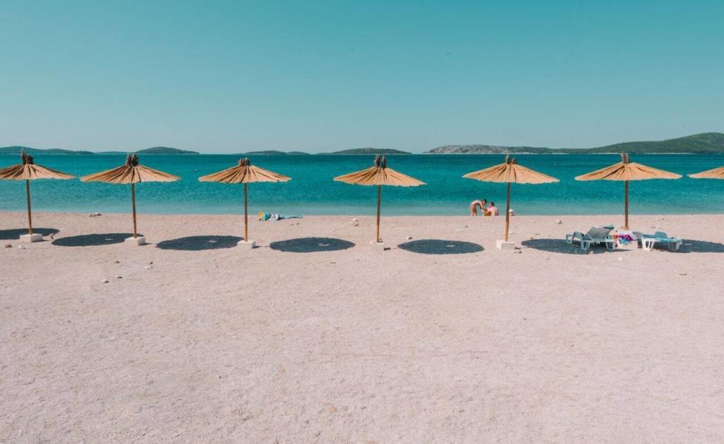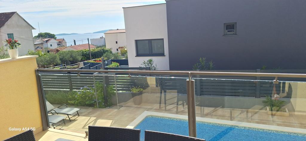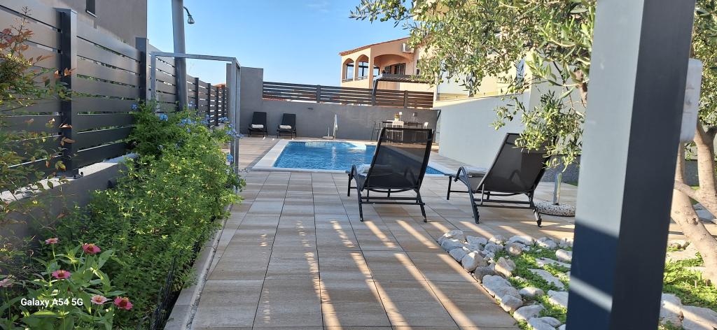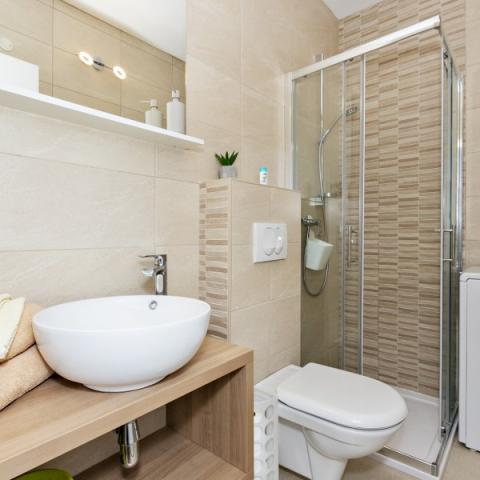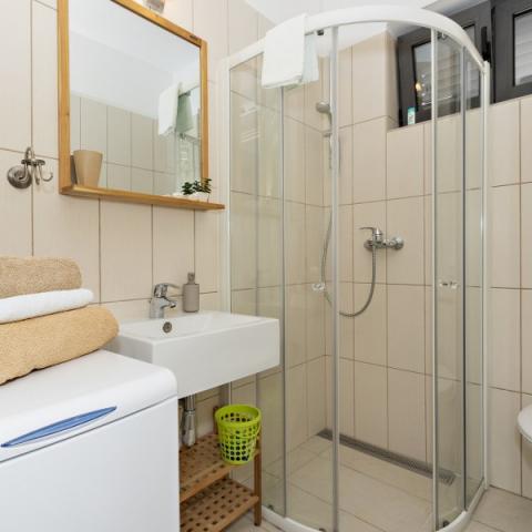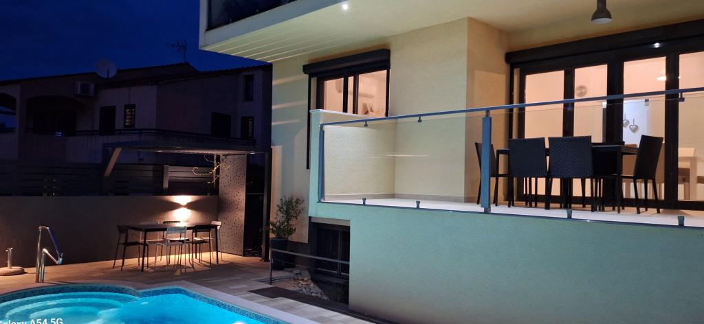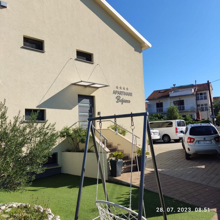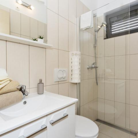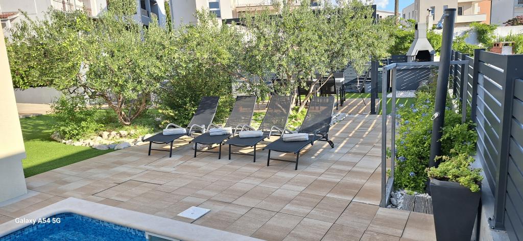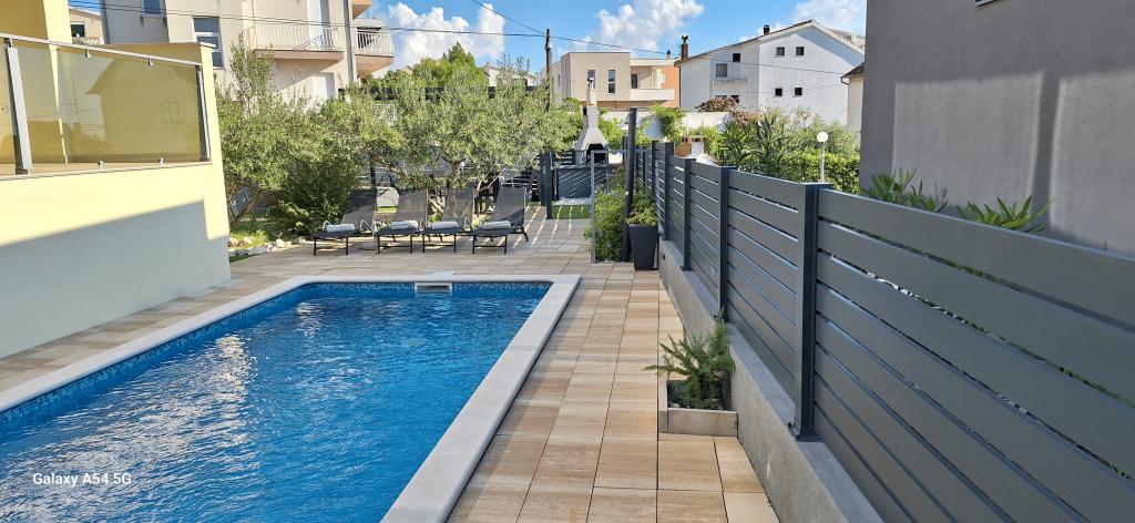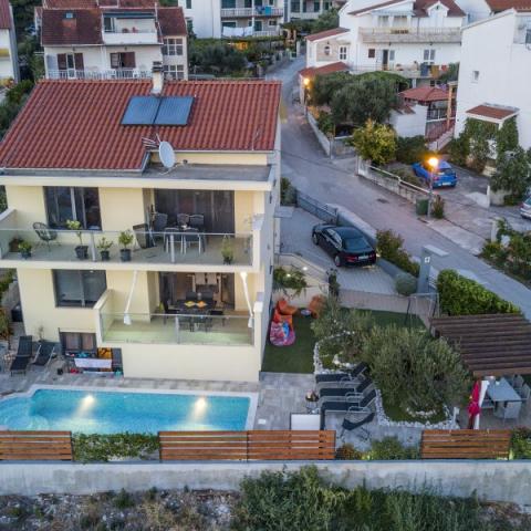 Apartments Bajama are located in the Šibenik suburb of Brodarica, only 3km from the center of Šibenik. In the house there are two modernly decorated apartments categorized with 4 stars each with two comfortable bedrooms, modern equipped kitchen and living room and two bathrooms and a toilet. From the apartment 1 guests can enjoy the sea view from their own balcony, while guests from Apartment 2 have their own direct exit to their own terrace, where the common yard with pool is continued. In addition, guests have access to a barbecue, a sunbathing area for sunbathing, sun loungers, an outdoor shower, a common exercise / game room and parking spaces in a fenced yard. Only 100m from the pebble beach with beach bars and children's facilities, 1.5 km from the Solaris resort with the famous Aqua Park and 3 km from the center of Šibenik, a city rich in cultural and historical heritage, Bajama vacation home is ideal for family vacations.