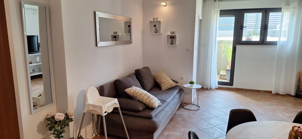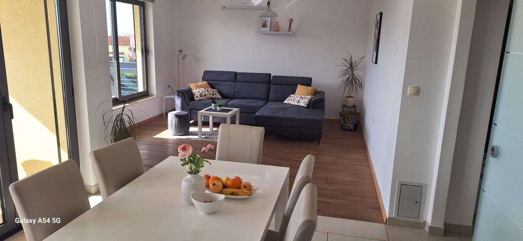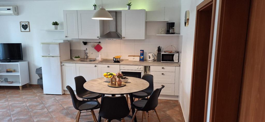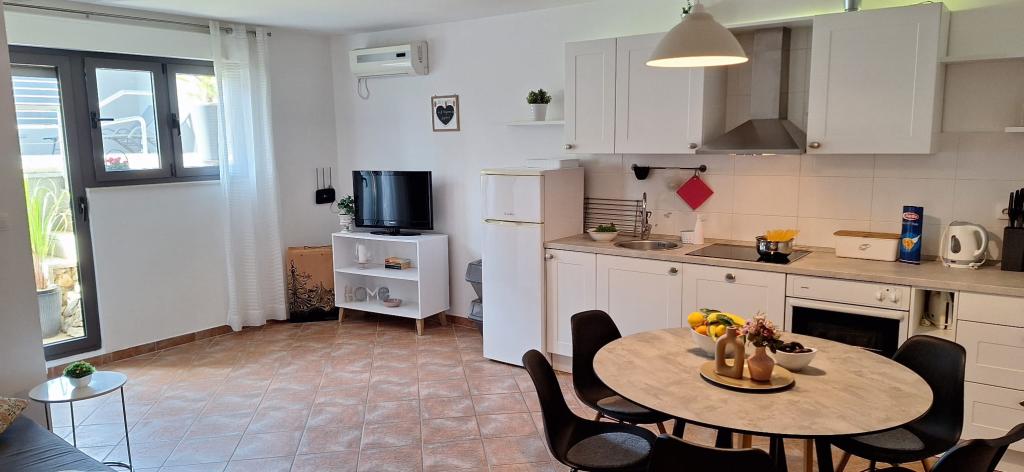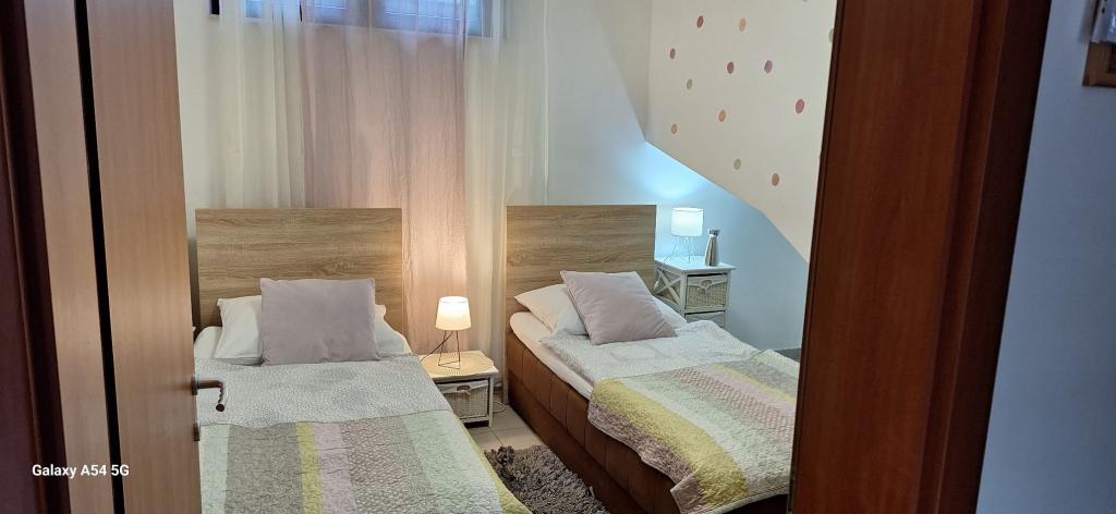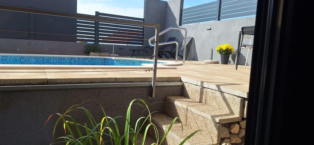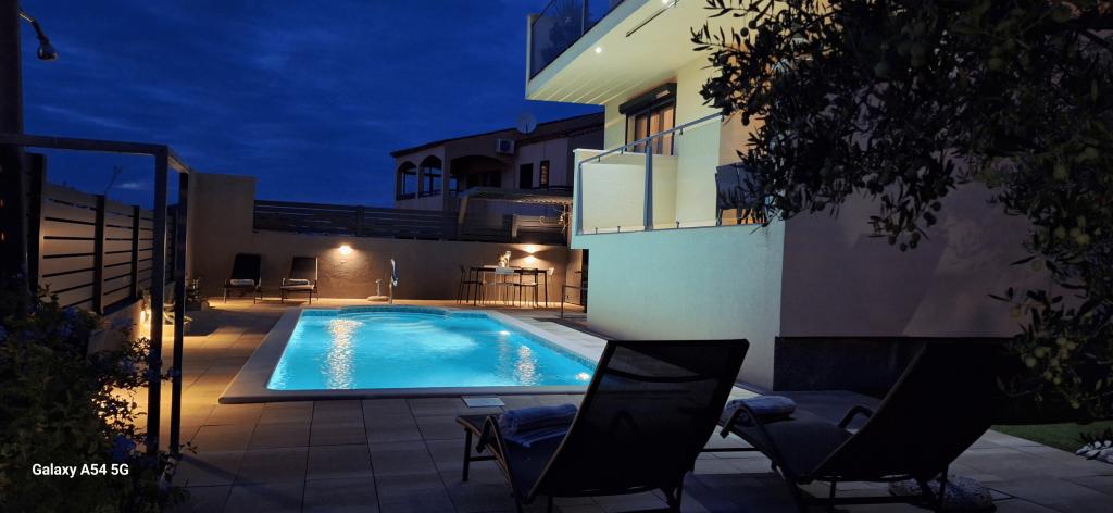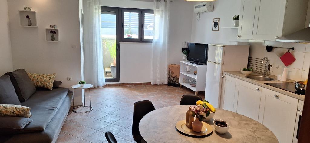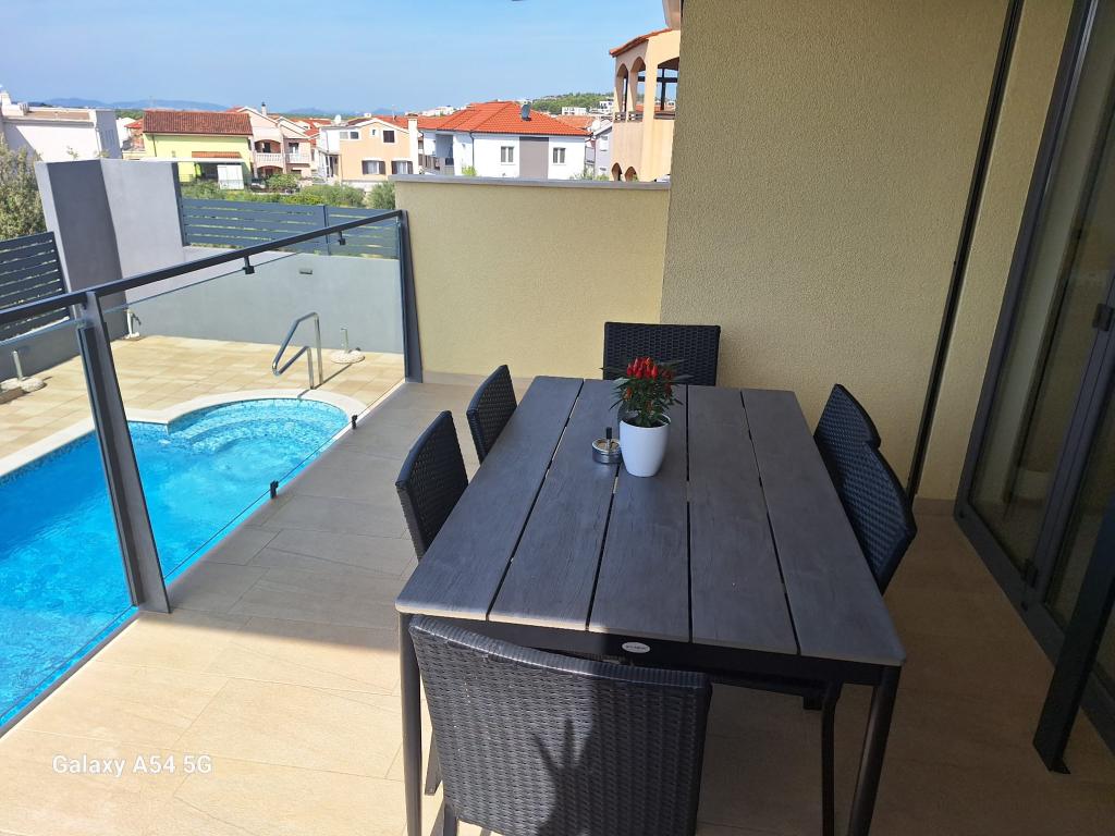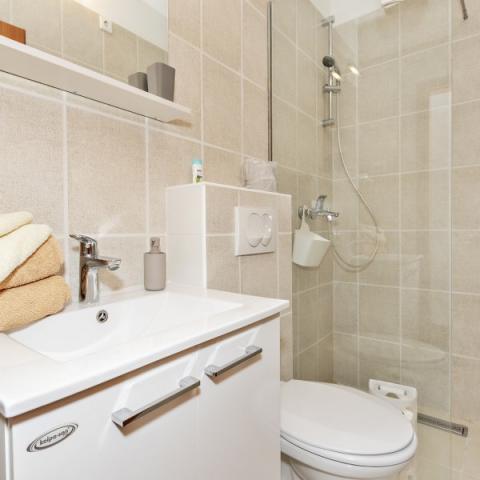 Apartments Bajama are located in the Šibenik suburb of Brodarica, only 3km from the center of Šibenik. In the house there are two modernly decorated apartments categorized with 4 stars each with two comfortable bedrooms, modern equipped kitchen and living room and two bathrooms and a toilet. From the apartment 1 guests can enjoy the sea view from their own balcony, while guests from Apartment 2 have their own direct exit to their own terrace, where the common yard with pool is continued. In addition, guests have access to a barbecue, a sunbathing area for sunbathing, sun loungers, an outdoor shower, a common exercise / game room and parking spaces in a fenced yard. Only 100m from the pebble beach with beach bars and children's facilities, 1.5 km from the Solaris resort with the famous Aqua Park and 3 km from the center of Šibenik, a city rich in cultural and historical heritage, Bajama vacation home is ideal for family vacations.