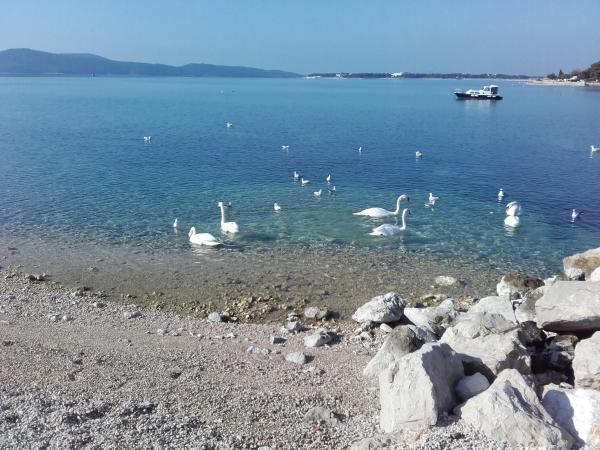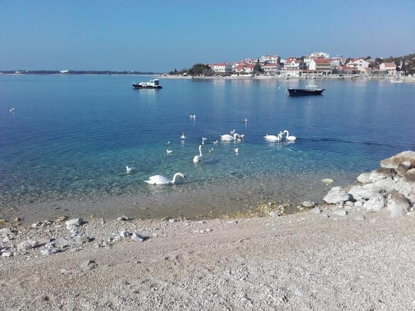 Apartment in a great location by the sea, close to the store and next to the Pizzeria Delfin where you can eat inexpensively and well. It is spacious, equipped with the necessary things from towels, pots, stove to washing machine, air conditioning literally everything is there. The owners were very friendly and helpful. We were there for the first time and we will definitely come back there again.