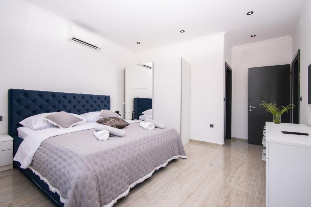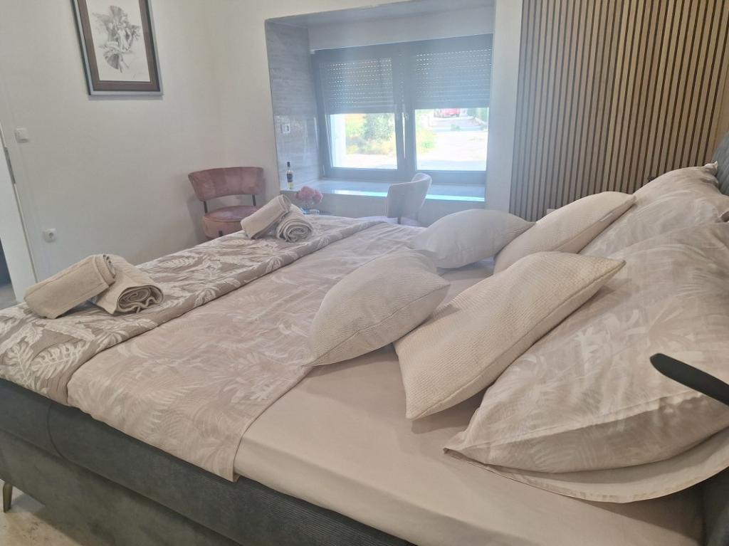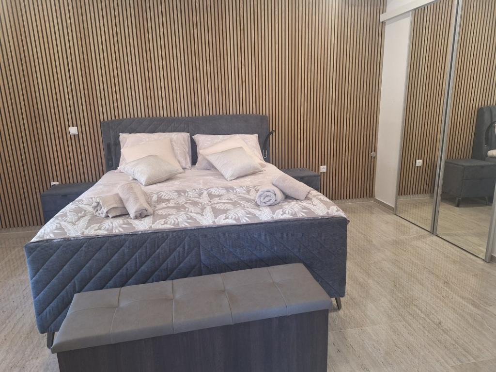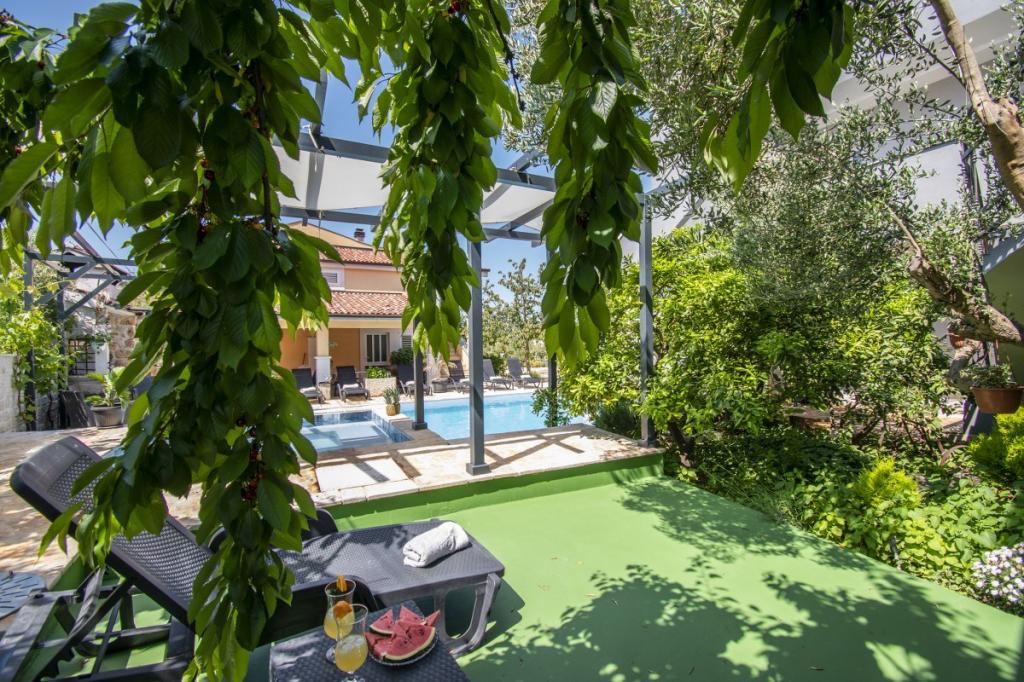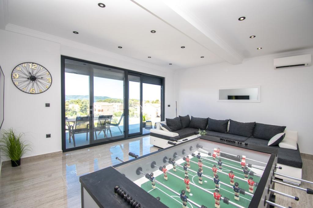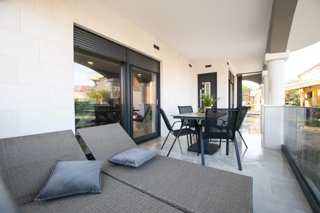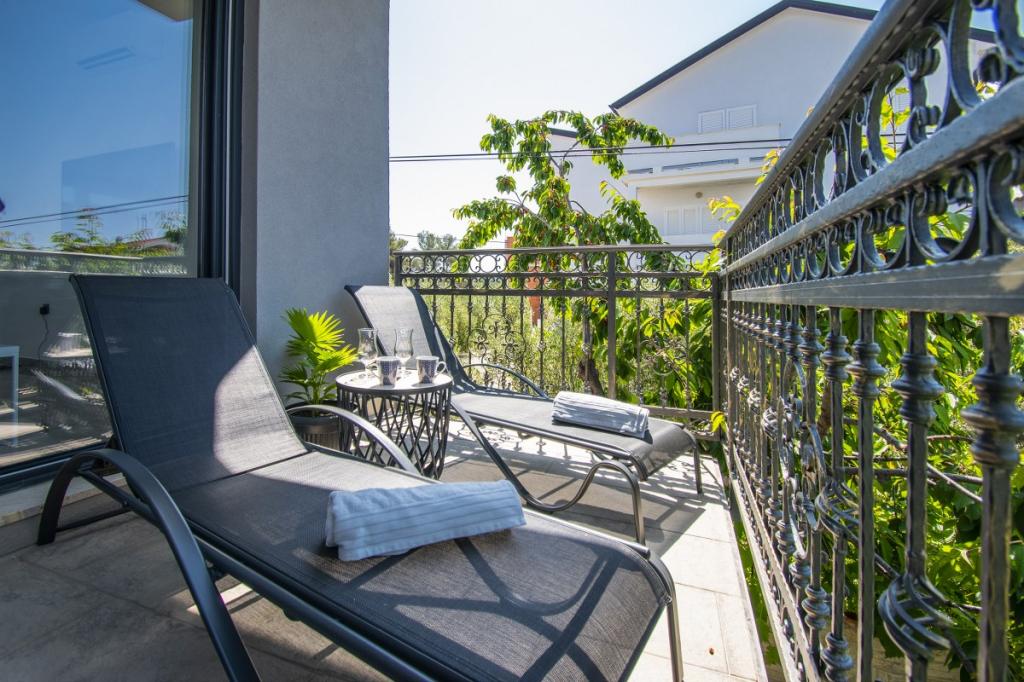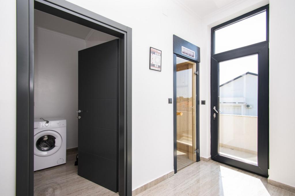 The house for 10 people with a swimming pool and jacuzzi is located in a quiet area of Brodarica, surrounded by plenty of greenery and flowers. The first two apartments are on the ground floor, one is 45 m2, and the other is 50 m2. Each apartment has a double bedroom, a kitchen, a sofa bed, a bathroom and a terrace with a table and chairs. The third apartment is 90 m2, located on the first floor, has two large double bedrooms, a large living room, kitchen, bathroom and a 45 m2 terrace with a table and chairs. It is suitable for a slightly larger family and friends. The apartment is air-conditioned. The fourth apartment is luxuriously arranged, about 100m2, has a large living room, a fully equipped kitchen, a large room with television and air conditioning, the apartment also has a sauna. there is a jacuzzi with a large terrace on the roof. each apartment has air conditioning and each room also has a television. The pool is shared. The house is 5-6 minutes' walk from the sea. Next to the house there are two more apartments, one is 110m2 luxuriously furnished, and the other is 55m2.