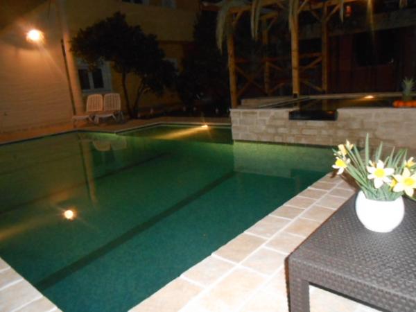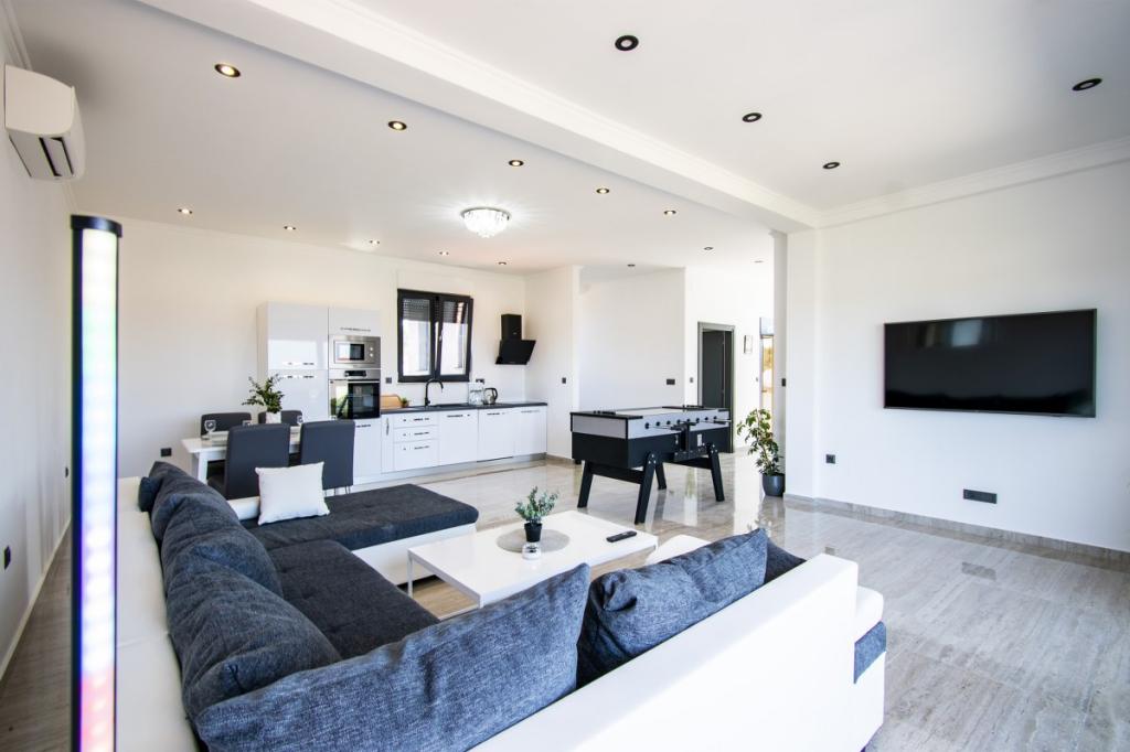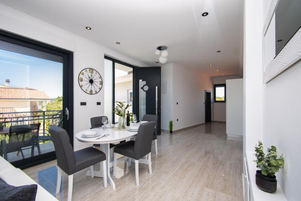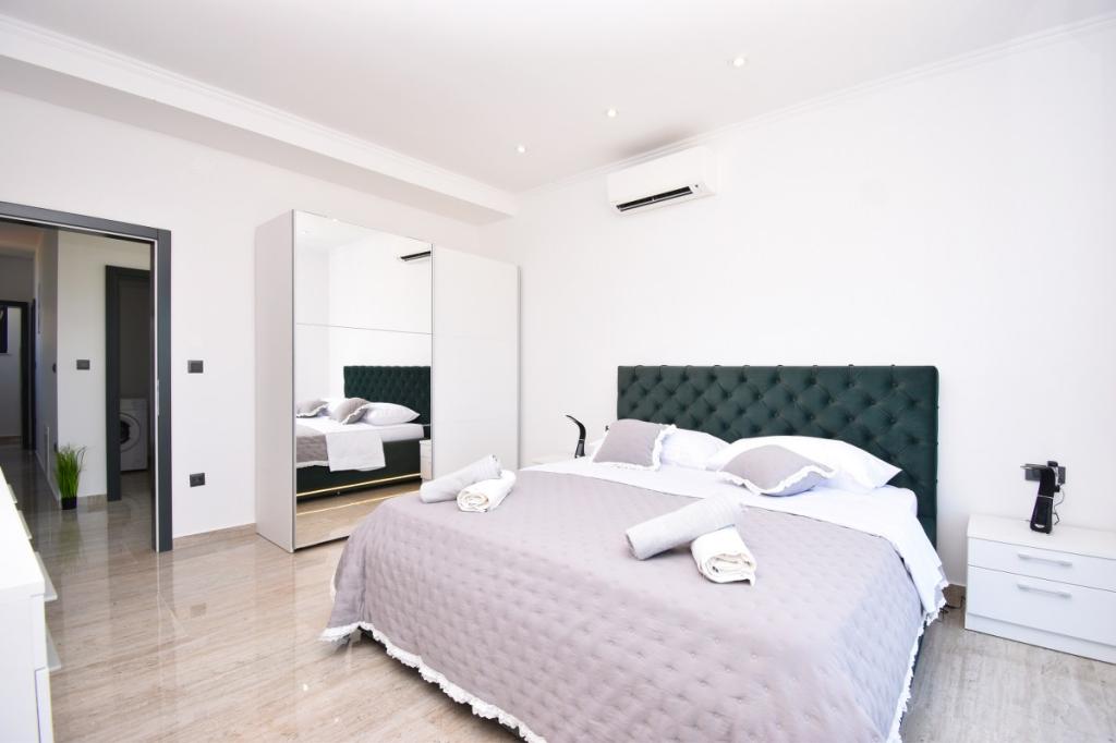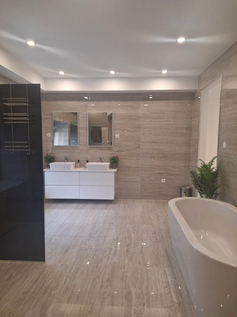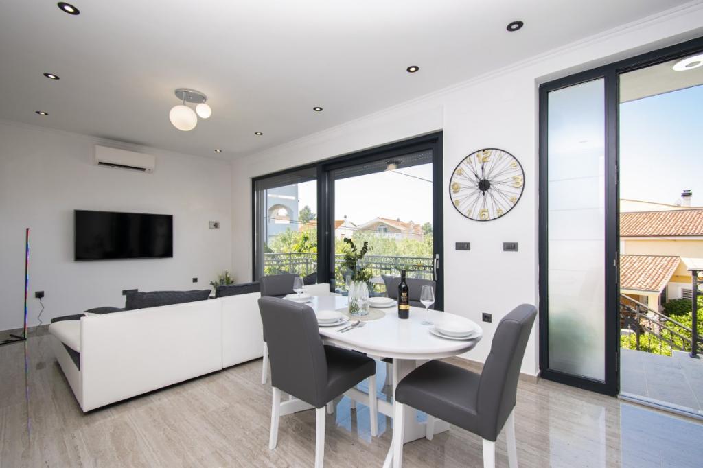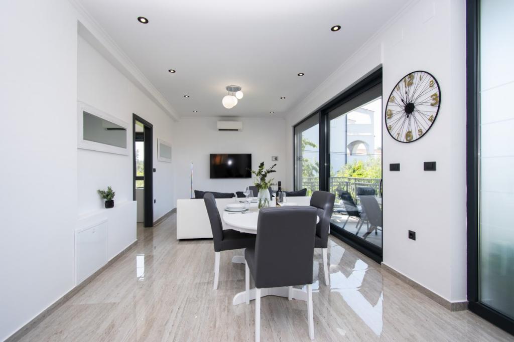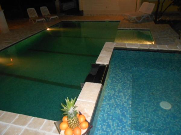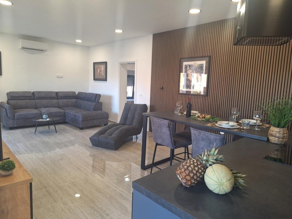 The house for 10 people with a swimming pool and jacuzzi is located in a quiet area of Brodarica, surrounded by plenty of greenery and flowers. The first two apartments are on the ground floor, one is 45 m2, and the other is 50 m2. Each apartment has a double bedroom, a kitchen, a sofa bed, a bathroom and a terrace with a table and chairs. The third apartment is 90 m2, located on the first floor, has two large double bedrooms, a large living room, kitchen, bathroom and a 45 m2 terrace with a table and chairs. It is suitable for a slightly larger family and friends. The apartment is air-conditioned. The fourth apartment is luxuriously arranged, about 100m2, has a large living room, a fully equipped kitchen, a large room with television and air conditioning, the apartment also has a sauna. there is a jacuzzi with a large terrace on the roof. each apartment has air conditioning and each room also has a television. The pool is shared. The house is 5-6 minutes' walk from the sea. Next to the house there are two more apartments, one is 110m2 luxuriously furnished, and the other is 55m2.
