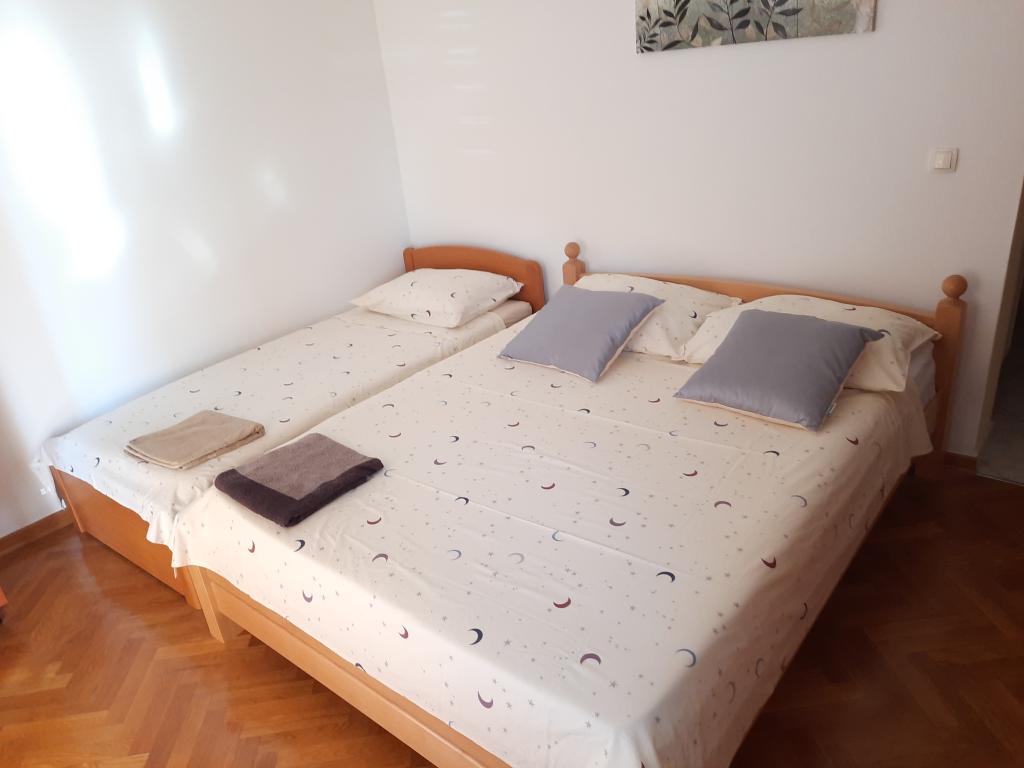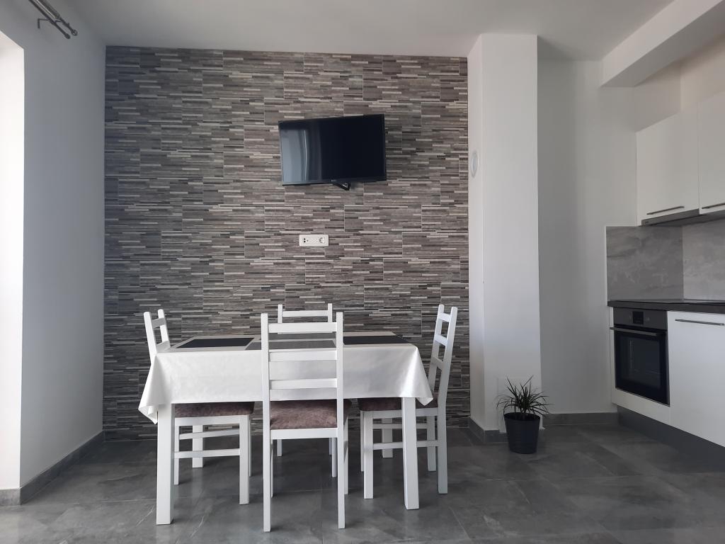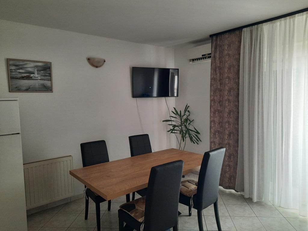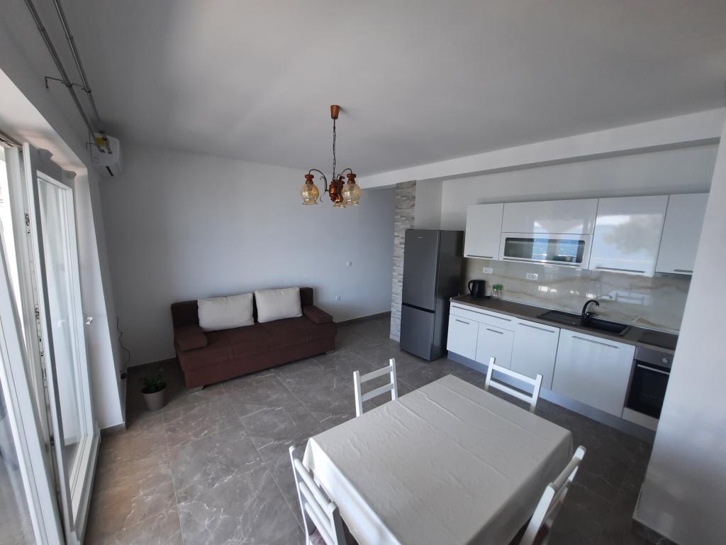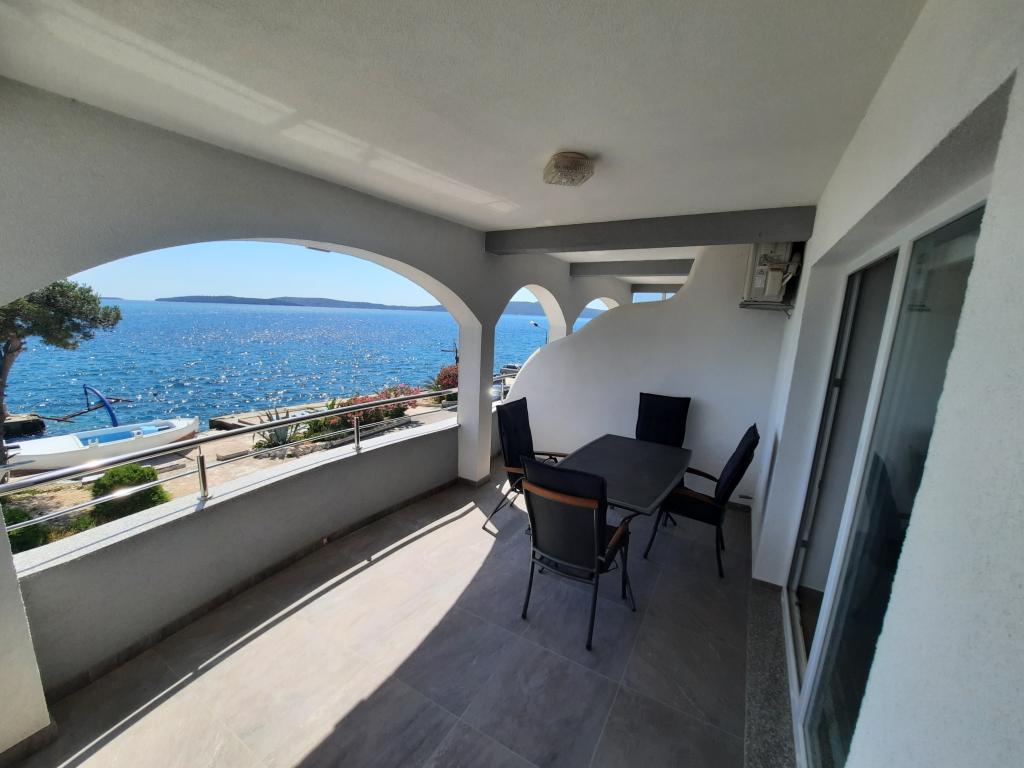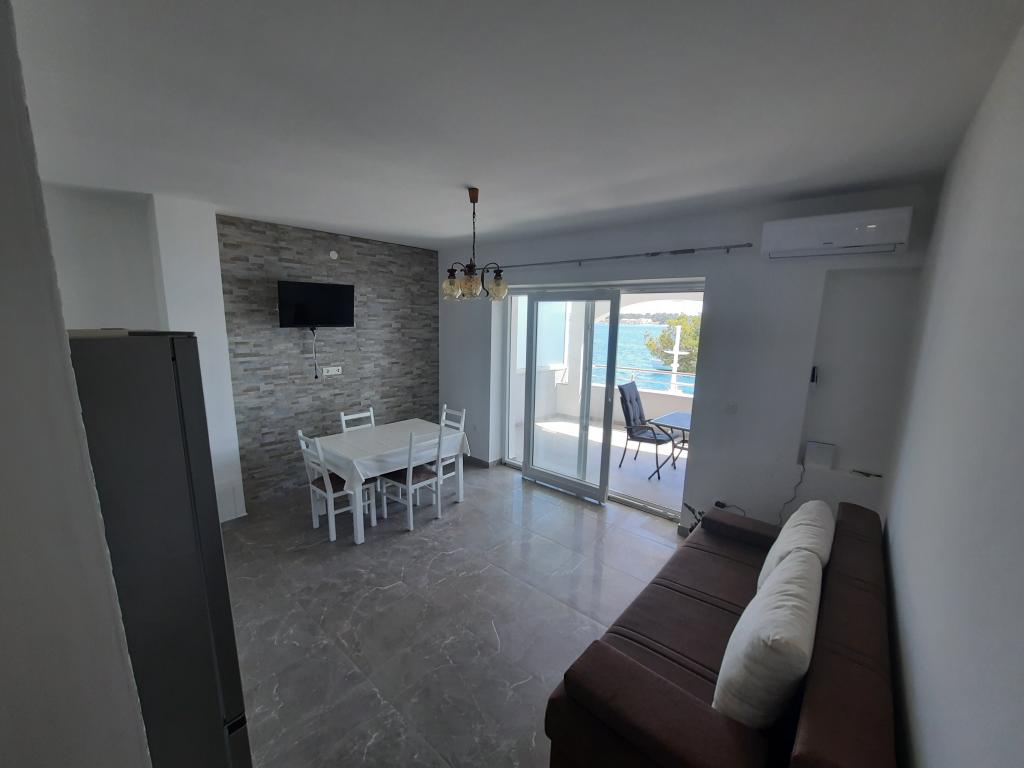 The apartment is spacious, full of light that is not actually visible in the pictures and immaculately clean. It is fully adapted for families with children. The kitchen is equipped with quality dishes, a large new refrigerator which is a novelty and which is not in the photo. Children have a spacious and comfortable bed the size of a double bed which in the extended position does not create any lack of space in the kitchen / dining room. The large outdoor terrace faces the sea, which is really about 30 meters away. Between the terrace and the sea is a yard and another house. The covered terrace is great for providing morning and evening hours outside. The hosts are incredibly helpful people to whom the guest really matters. They are always at your service for whatever you need. Really for every recommendation, especially now at the time of the corona. If you want peace and almost your own private beach, a full hit.
