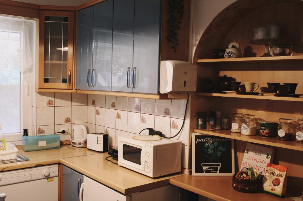 The kitchen is fully equipped with all household appliances, and basic spices, coffee and tea are available, and you will be greeted with a welcome drink or a homemade product from your own garden. The outdoor barbecue is fully equipped for grilling. The yard has equipment for children's entertainment and recreation, and the apartment has a closet with toys.