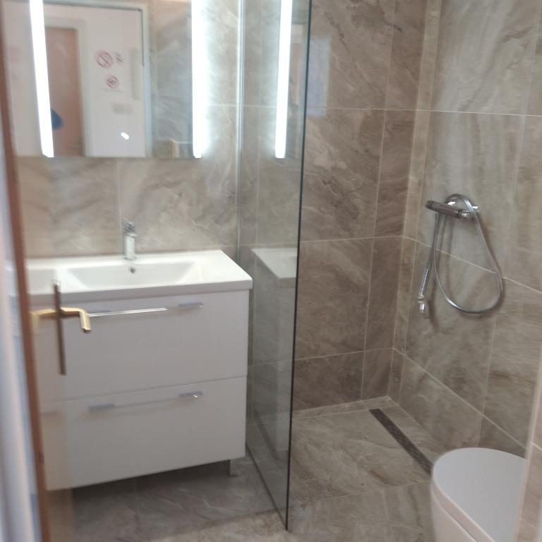 Thank you for a nice week in the Agneza apartment! The apartment was equipped with modern and everything we needed. The description as well as the photos fully correspond to reality. Both the air conditioning and the wifi functioned without any problems. The sea moves around the houses, it can not be walked down the sidewalk. On the way was the beach with a gradual entry to the sea. You have to be a car in the vacs trade. The island of Ciovo is connected with the city of Trogir by a bridge - and because it is the only bridge that seams the island with the mainland, there are still storms (only minuses). The owners, Zdravko and Agneza, are very pleasant, attentive and kind people. Thanks for the evening with the vine and the grilled fish.