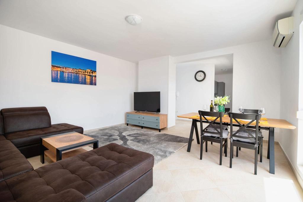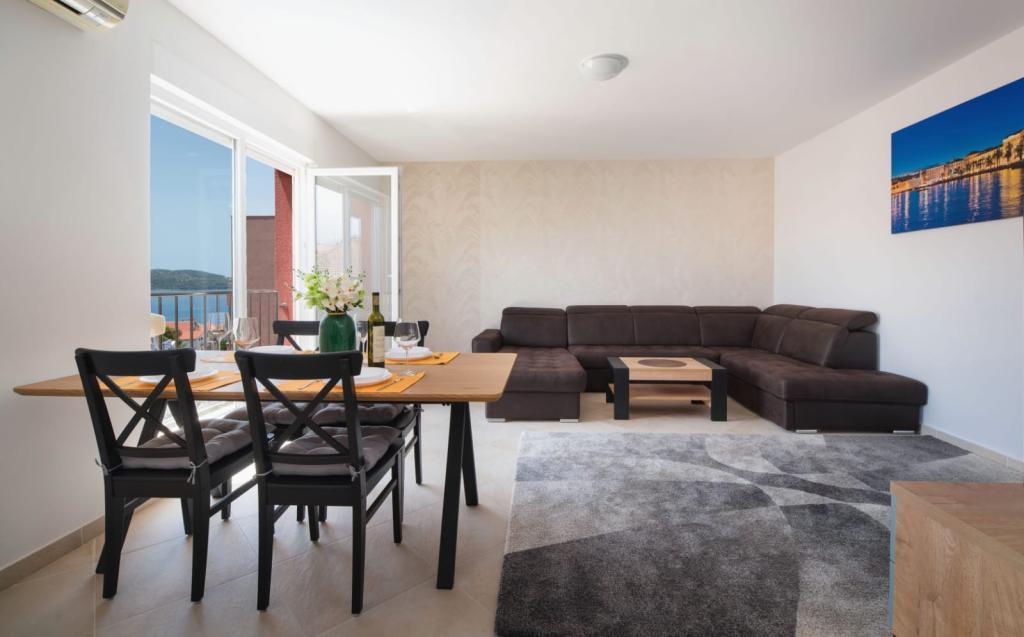 The apartment consists of 2 bedrooms, bathroom, kitchen, living room terrace with a total area of 68m2. Each room has a large double bed and air conditioning. The kitchen has everything you need to prepare a delicious meal. The apartment is located in a quiet part of the island. Camp Rožac is 150 m away. Supermarkets, restaurants and bakeries are nearby. The apartment has its own parking space at your disposal. The swimming pool is open from 15.06.-15.09. It is used from 8.00.-20.00.