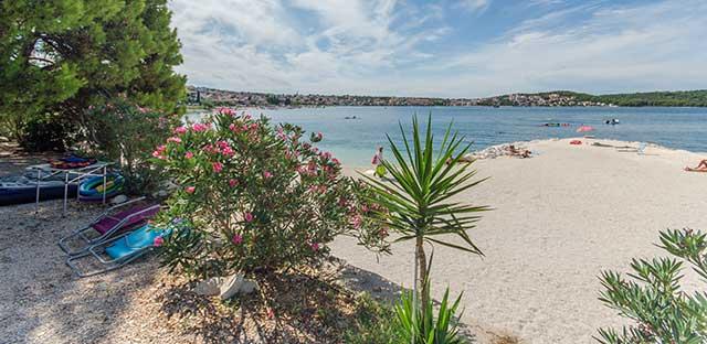 On the nearby beach, you can rent a boat, scooter, pedal boat, sunbeds and umbrellas or go on organized trips to nearby islands. There is also a boat line that goes to Trogir every day every 20 minutes.