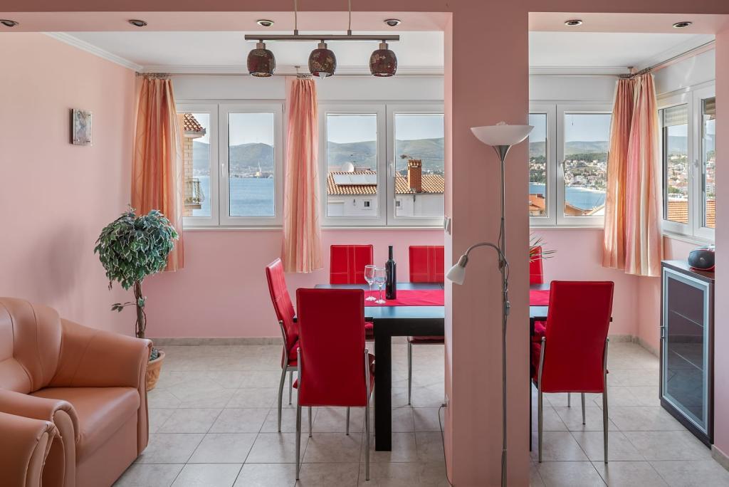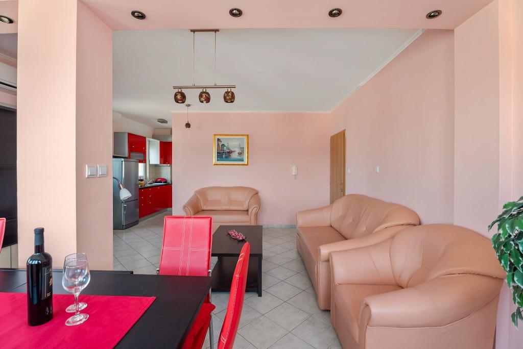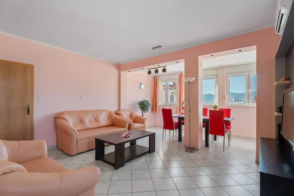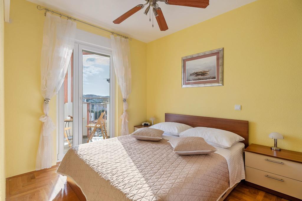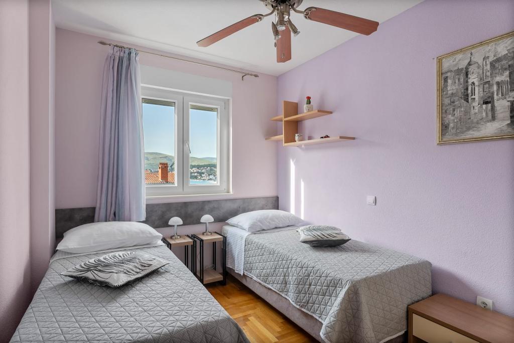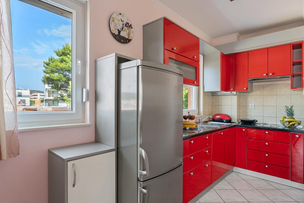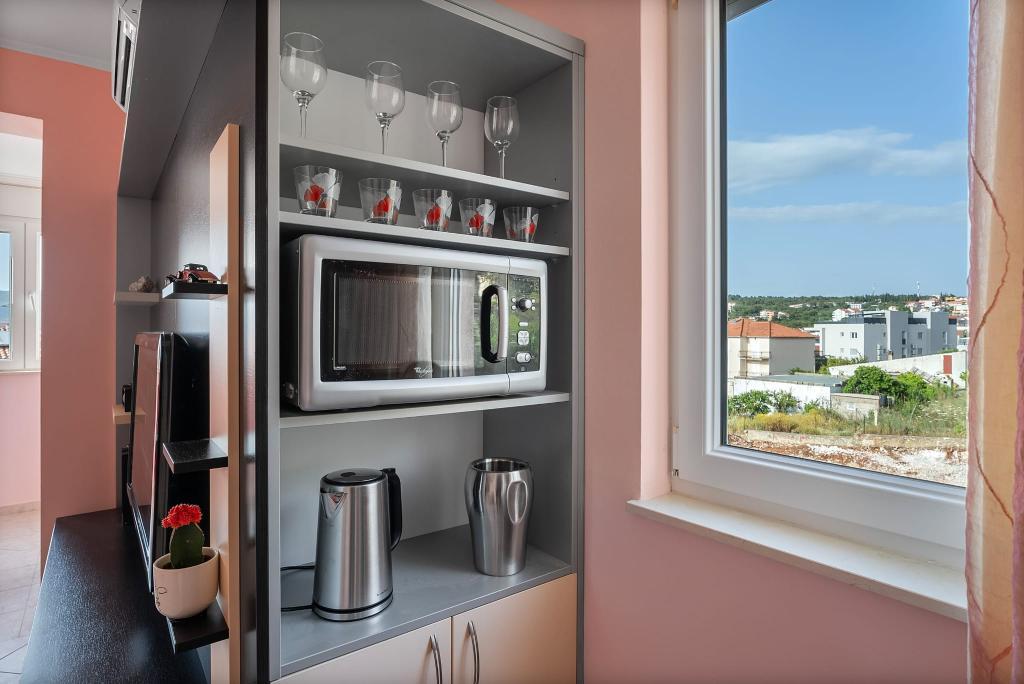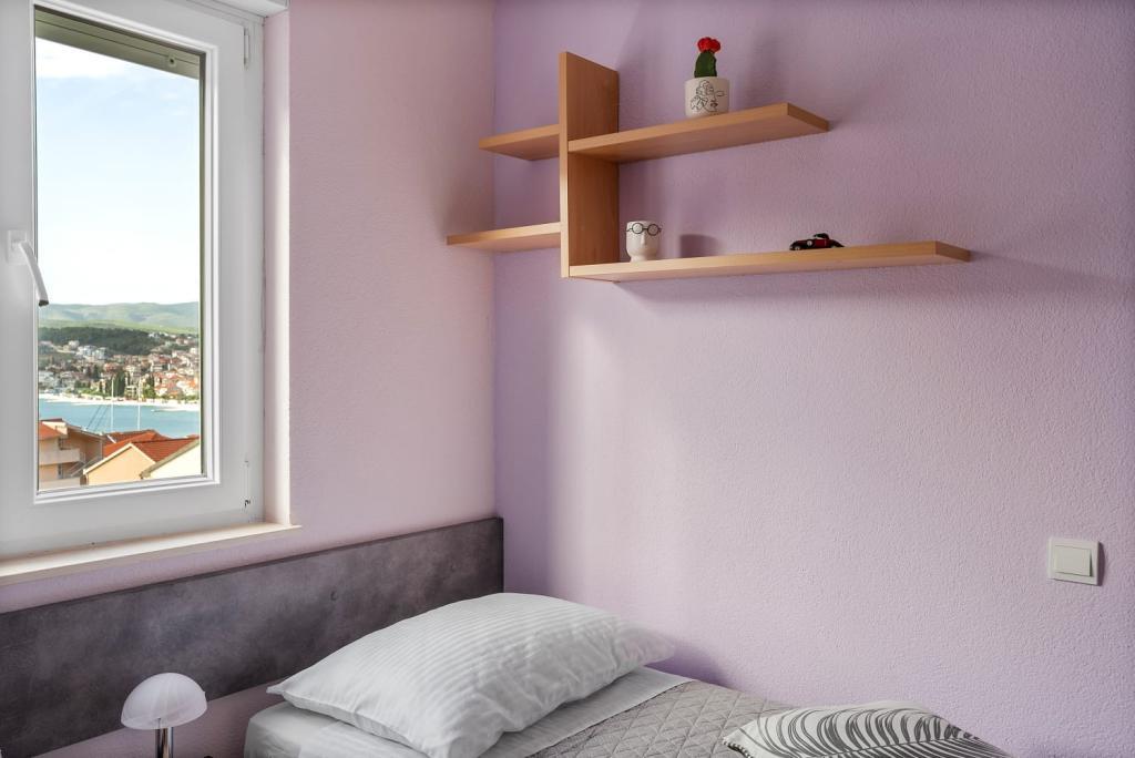 Apartment Summer Memories is a spacious and modernly furnished apartment on the 2nd floor of a building with a sea view, 15 minutes by car from the international airport. The apartment is located near beautiful pebble beaches that stretch all the way to the old town of Trogir. The nearest beach is a 4-minute walk away. The apartment has a balcony where you can enjoy your morning coffee and the sea view. It has 2 bedrooms, one of which has the option of connecting 2 beds into a double bed. The apartment has 2 air conditioners. In front of the building you have secured parking for your vehicle. Nearby are: a supermarket, cafes and restaurants on the beach.