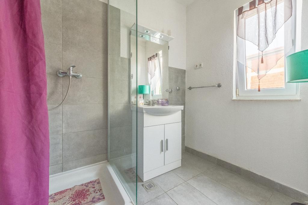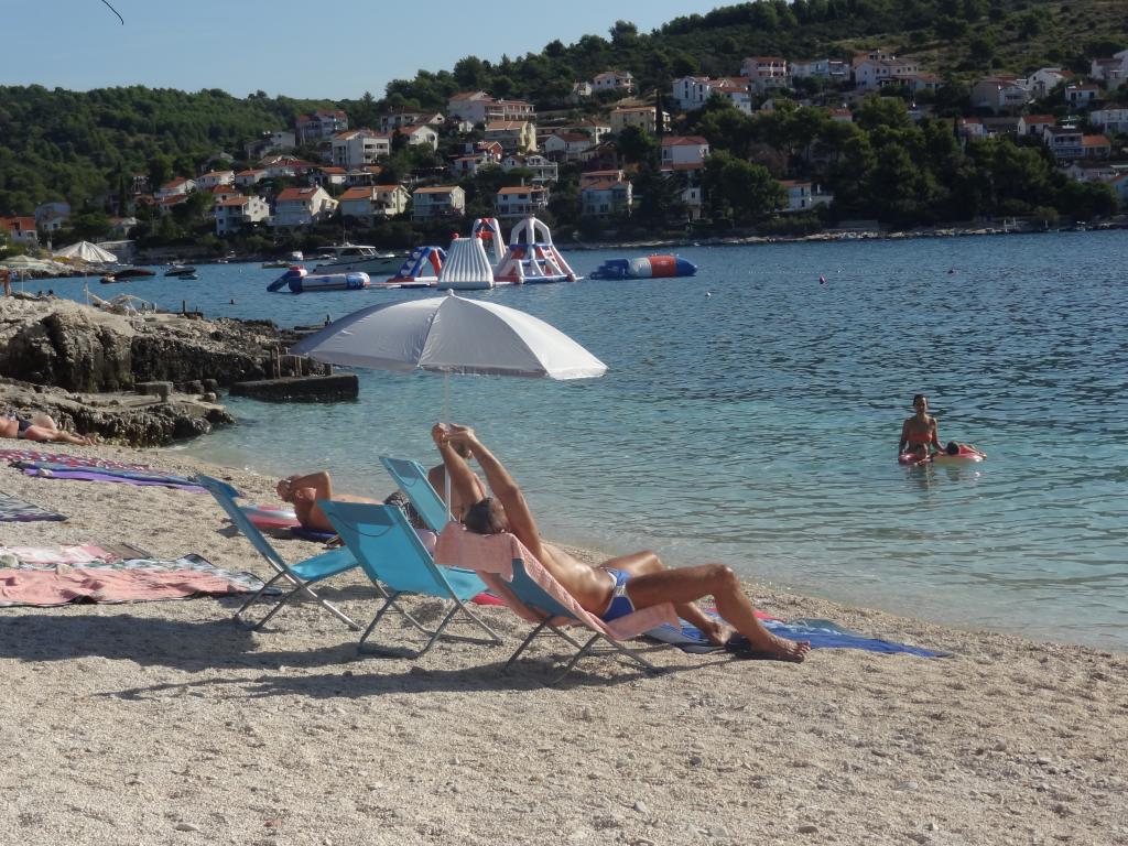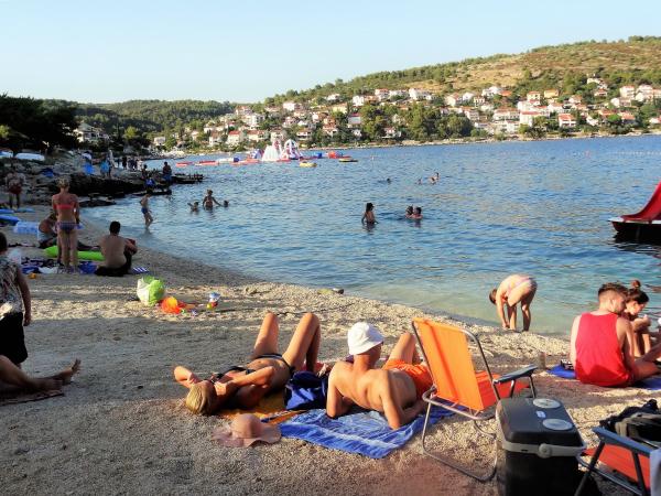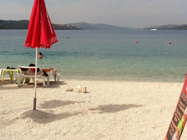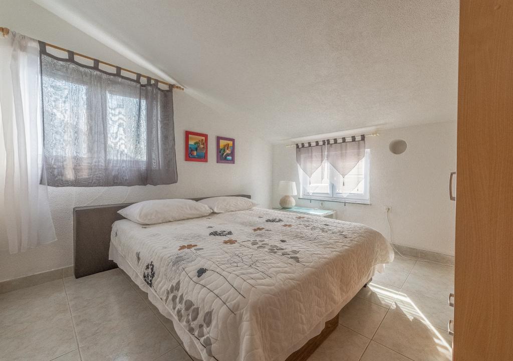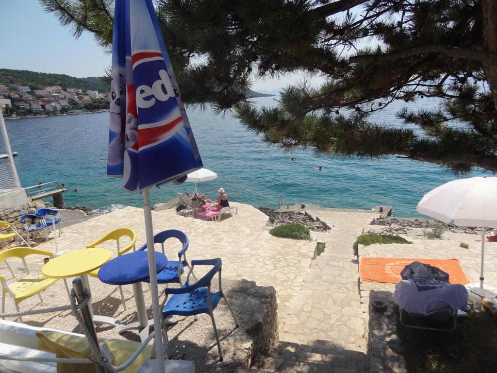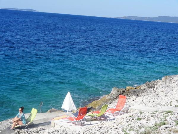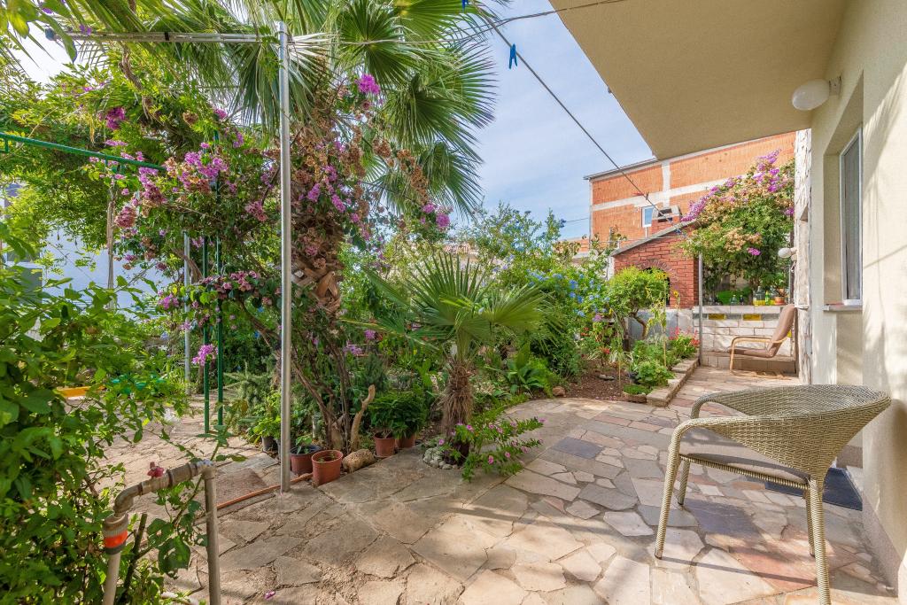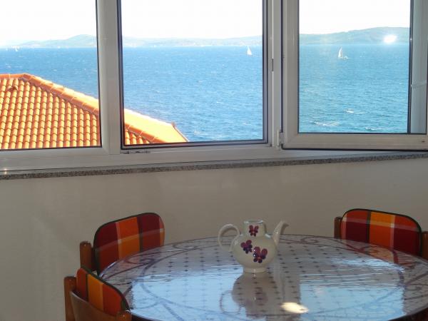 The house is on 3 floors. Each floor has its own entrance, a parking space and a balcony with table and chairs. Apartment no. 1 (first floor) has one room with double bed and a living room with a double bed for a click. Apartment no. 2 (second floor) has a bedroom with a double bed and a living room (separate room) with a luxurious sofa (160X 200) for two, plus dining. Ap br. 3 is on the third floor with a bedroom with a double bed and a living room (separate room) with a luxurious couch (160 X200) for two plus a dining room. To the sea and the nearest beach is exactly 70 meters. The house has a view of the open sea and the islands. You can reach the market in 3 minutes, the restaurant for 5 minutes, church, supermarket, market, bank and doctor can be reached in 15 minutes. The airstrip is 10 kilometers away. The apartments are modernly equipped. They are located 60 meters to the nearest beach, on the quiet southern sunny side of Čiovo. With an affordable price and rich cultural entertain your entertainment program .