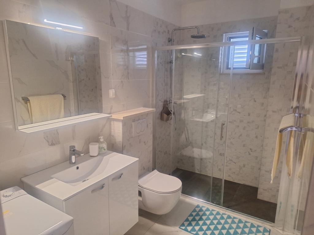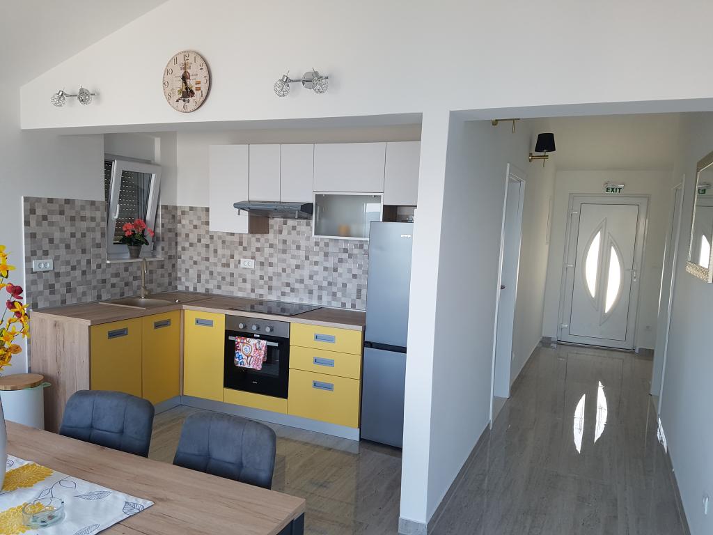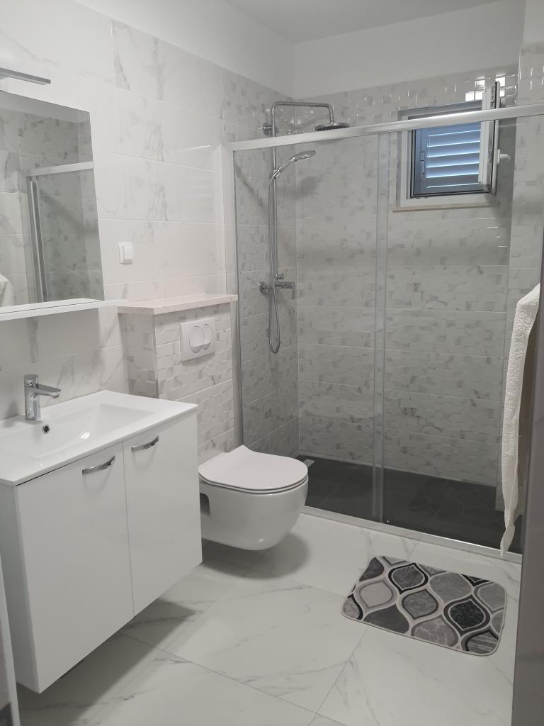 The apartment was neat and clean upon arrival, completely in line with the pictures and description from the ad. It is spacious, modern and pleasant to stay in, the beds are very comfortable, the kitchen is well equipped, and the large terrace with a beautiful view leaves a special impression. An additional plus is the secure, locked parking. The location is great, the beach is only a 2-minute walk away. Although it is rocky, it suited us, and there are suitable beaches for children nearby that can be easily reached on foot. In addition, the island offers many other beaches, so there is no shortage of choice. There is a large Tommy market in the immediate vicinity, and the center of Okrug with a pharmacy, bakery, post office and all other amenities is also very close. The city of Trogir is easily accessible, by car or boat, where you can do some major shopping or explore the city. The hosts were very friendly and always available, but unobtrusive, which was especially convenient for us. All in all, the apartment and the hosts fully met our expectations and lived up to the ad. We definitely recommend it!