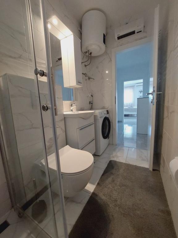 A very nice apartment, equipped with everything you need for a pleasant holiday. It's especially suitable for families with children. Most importantly, it's perfectly clean and the beds are very comfortable. Everything matched the description and the picture in the ad exactly. The balcony offers a beautiful sea view. Quiet place, near the sea, a small beach without much crowds and noise guarantees an unforgettable holiday. Mrs. Jadranka is very nice and friendly and always ready to help. I can only recommend it.