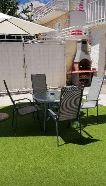 Fully and modernly equipped apartment in a quiet part of the south side of the island of Ciovo, which is connected by bridges. The apartment is located 70m from the beach, completely covered with mosquito nets, there is a grill located in the spacious yard ... cafes and restaurants are within 200m, to Trogir is 5 km, to Split 30 km.