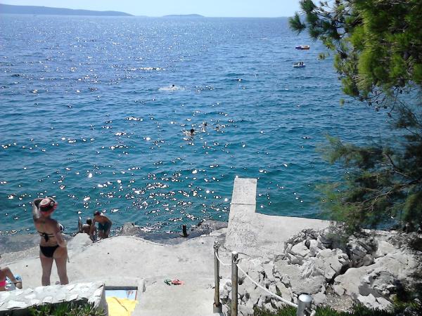 Near the sea, with sea view from the terrace and great peace in the area. The hosts are very friendly and approachable. The sea is clean and beautiful for real swimmers. Nearby are the smaller bays with beaches and more visitors. Menu was great, although the climb can be a challenge for those who have big problems with the heart, if you can not drive. The apartment is neat, clean and contain everything you need. There are possibilities for day trips by boat to the nearby island of Solta and Drvenik, with breaks for swimming and excellent food (we had fish and was fantastic). If you are lucky, you can experience a great show local music with a good atmosphere and good wine! Have a nice holiday you want, Alma