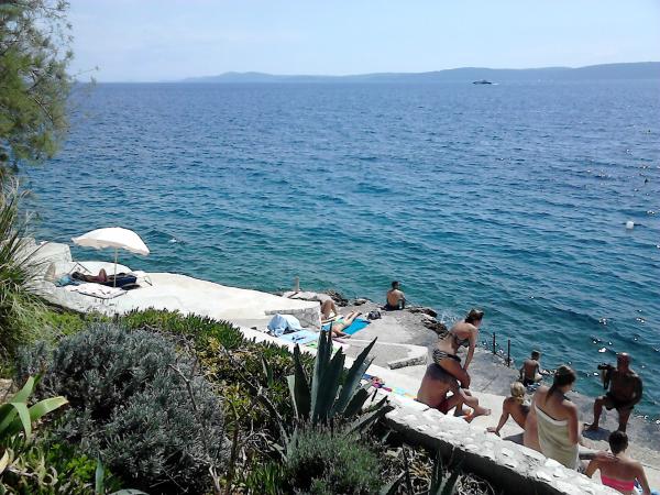 Comfortable apartment, nice quiet location near the beautiful rocky seaside, very hospitable hosts. A little difficult to get to on narrow roads from Trogir but absolutely worth the effort! And you can also visit Split by boat from a nearby port.