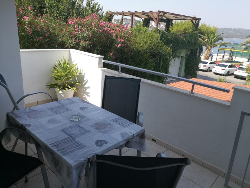 Apartment with sea views situated in a family house which is located 5 meters from the beautiful sandy beach, which offers many opportunities for sports and recreation. On the beach there are numerous restaurants and cocktail bars, and there you can also rent boats, jet skis, scooters .... From UNESCO Trogir is 2 km away and it can go by boat, which departs every 15 minutes. Due to the proximity of all, you can forget about the car. Apartments are equipped with satellite TV and the Internet. In front is a large garden and free parking, and for all other hosts are always at your disposal.