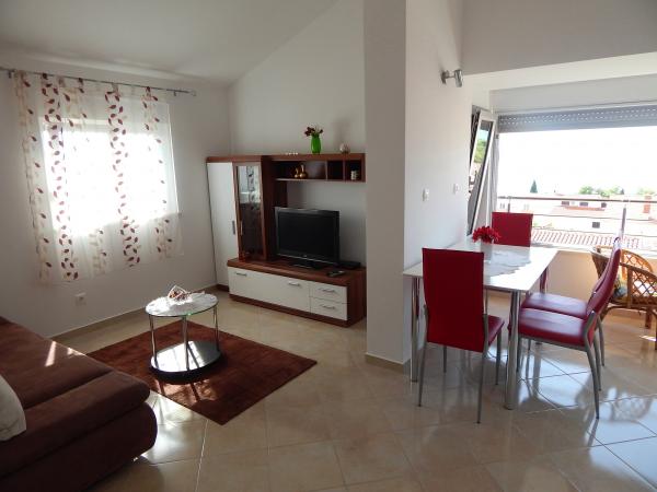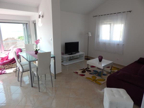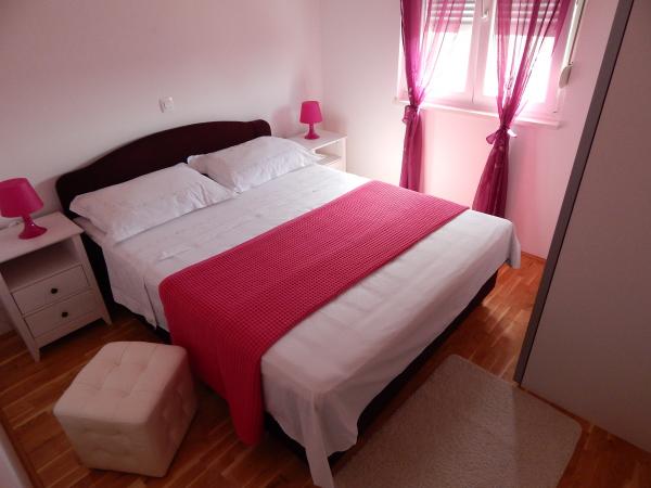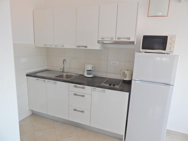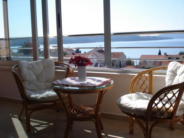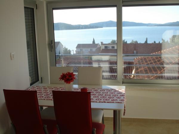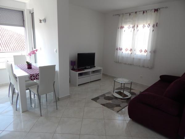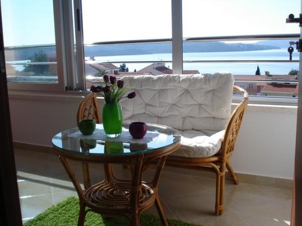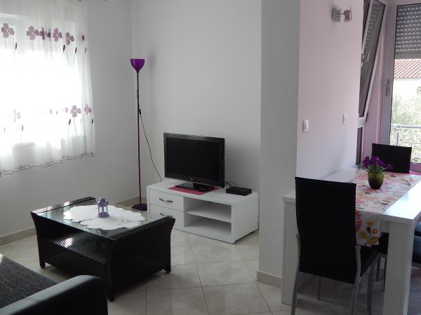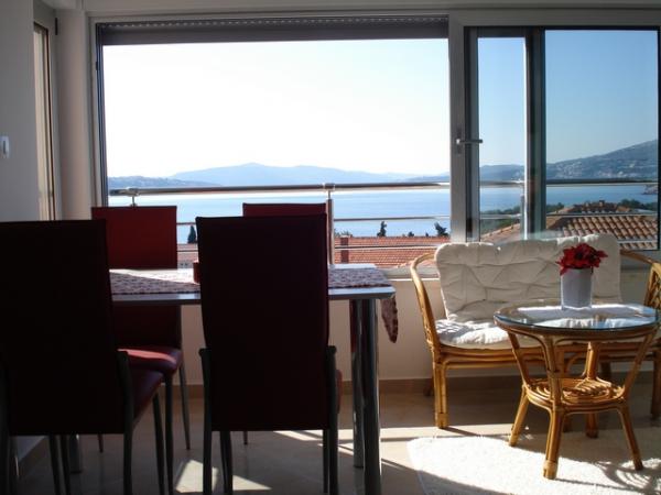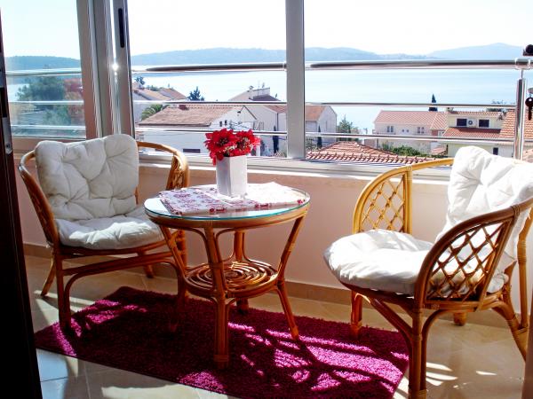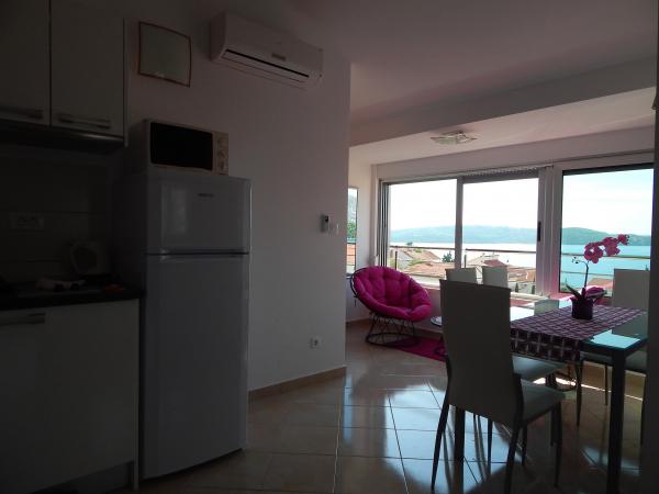 New, air-conditioned, modernly furnished and fully equipped apartments overlooking the sea just 80 m from the sea and the nearest beach. All apartments have free internet access (WiFi), satellite LCD TV. They are located in Okrug Gornji, away from the center the historic town of Trogir 1.5 km. The apartments are for 2-4 persons with one bedroom and a sofa bed, equipped kitchen (stove, oven, fridge, coffee maker, electric kettle), living room, bathroom and glazed balcony. Guests can use the shared washing machine. In front of the property is free parking and barbecue. The nearest restaurant and shop are just 100m away. Bars are 250m away.