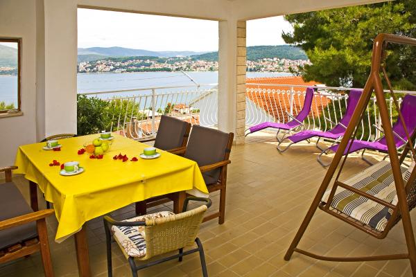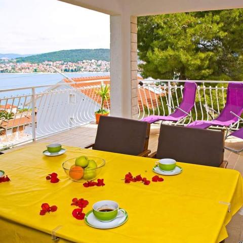 The apartments are located in Okrug Gornji, at the address Planikovica VII / 3. The features that characterize the space where the apartments are located can be presented as: clear sea, untouched nature, an ideal place to stay for families with children and friends. Each apartment has a beautiful view of the sea and nature from its balconies and spacious terraces. Each apartment has private parking, air conditioning and the right to free unlimited internet. Distance from the old town of Trogir is only 4.5 kilometers. Nearby is the 2 km long Copacabana Beach. In addition to a pleasant stay, you can find a variety of fun activities for all ages. On the main, already mentioned beach there are a large number of bars, restaurants and shops. If you are looking for a pleasant stay in a quiet place, near the sea with the sun's rays without the noise of cars then you are in the right place Ap. 1 has 3 rooms each room has bathroom and balcony Ap. 2 has 3 rooms with 2 bathrooms Ap 3 has 3 rooms WELCOME