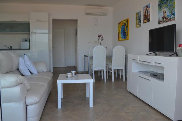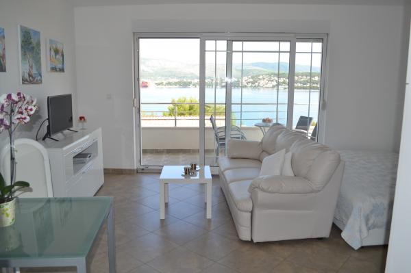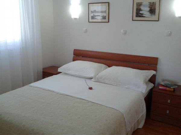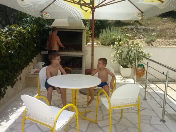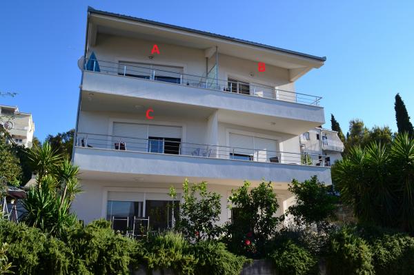 Welcome to Apartments Oklopčić! Apartments are in Okrug Gornji on the island of Čiovo which is connected to the mainland and the town of Trogir (on the list of UNESCO) with bridge. City Trogir is 4 km, Airport Split 10 km and city Split 25 km from the apartments Oklopcic. We rent three apartments; apartment A(2 2), apartment B (2 2) and apartment C (2 1). Apartments have three stars, 48m2, fully furnished and each apartment has a terrace overlooking the sea. In the garden is a terrace with barbecue, tables and chairs that are available to our guests. The price includes tourist tax, air conditioning, parking, bed linen, towels, use of washing machine, dishwasher and WI-FI. If you want to spend your vacation in a quiet place, beautiful nature, enjoy the clear sea, beautiful beaches and walks along the sea (beach is approximately 2 km long) you should choose to spend your holiday with us.