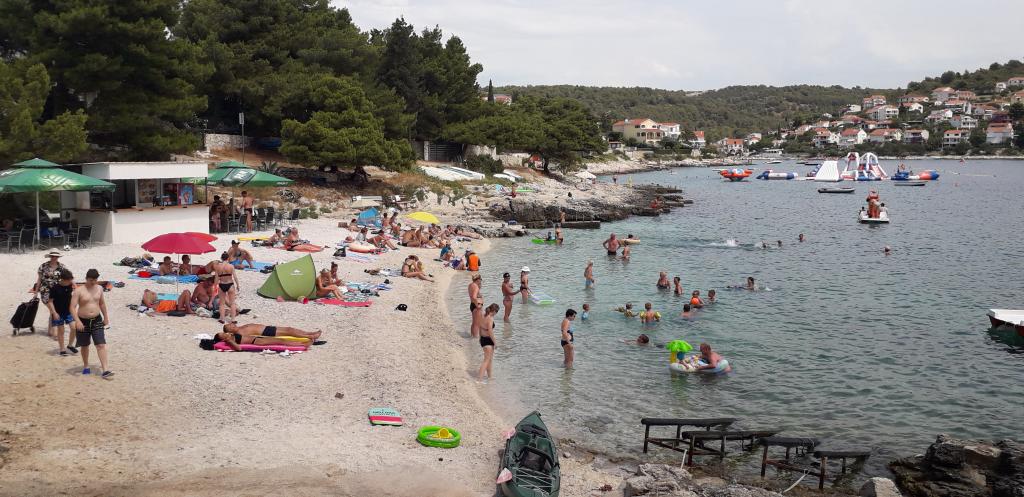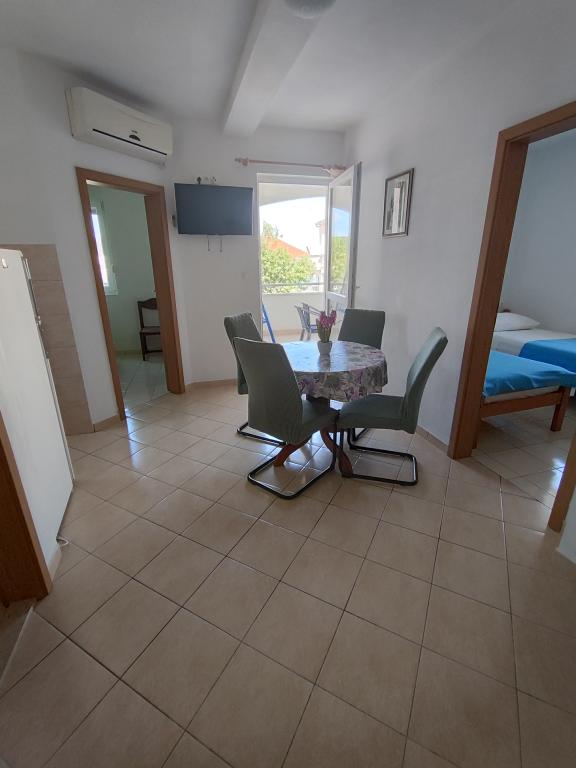 Completely and modernly furnished apartments on the island of Ciovo, 100 meters from the sea, with parking and separate entrances. All apartments consist of a kitchen, living room, bathroom and one to two bedrooms. The apartments are equipped with everything you need for a comfortable stay - air conditioning, kitchen appliances, grill, satellite TV, WiFi. THE WASHING MACHINE, if not in the apartment, IS LOCATED IN A SEPARATE PART OF THE HOUSE. Apartments Sikirica are located in Okrug Gornji, 4 kilometers from the town of Trogir. There is a diving club nearby. The town center, where there is a tourist office, pharmacy, doctor, bakery, children's playground and a well-equipped Tomy supermarket with the best prices for food products, is only a ten-minute walk away. Restaurants and cafes are a 5-minute walk from the house. Religious facilities are also close by. The nearby pebble beach in the pine forest, suitable for children, is a few minutes' walk away.