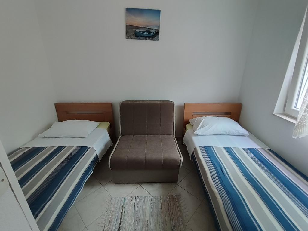 The rooms are spotlessly clean. Very nice and helpful owners. Rooms are 100% equipped. Modern room. There is a sea view from the terrace. Quiet and peaceful surroundings. Very close to the sea. I recommend everyone to relax in this place. We will definitely go back there again. Greetings to the owners
