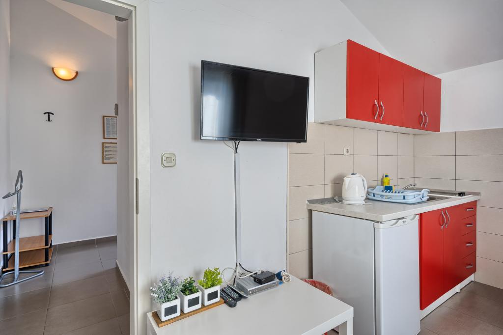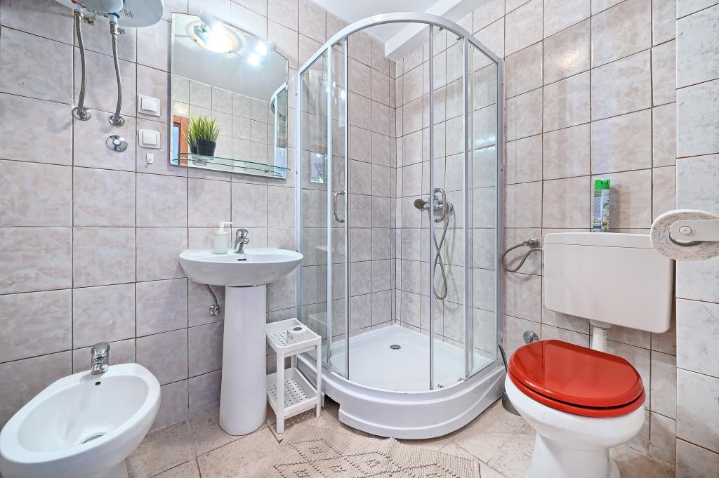 Absolutely perfect space, favorable price, apartment with a direct view of the sea and the pool, outdoor shower by the pool and sunbeds for the comfort of guests, the road to the parking lot is really quite steep and slippery, we lacked a shop in the vicinity, but the quality of the accommodation made up for it.