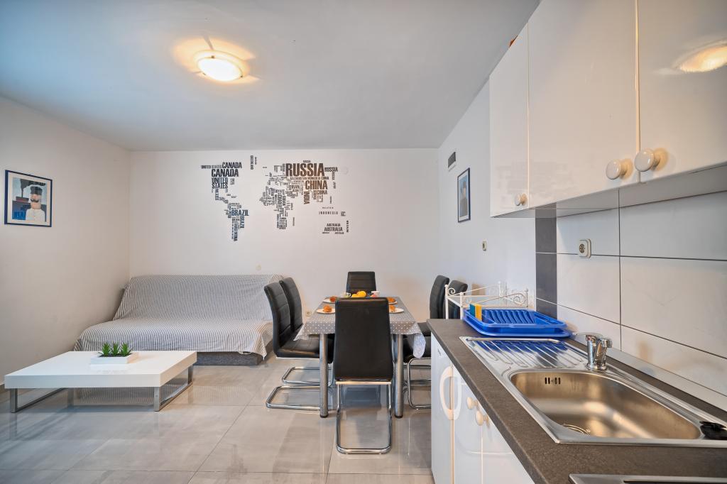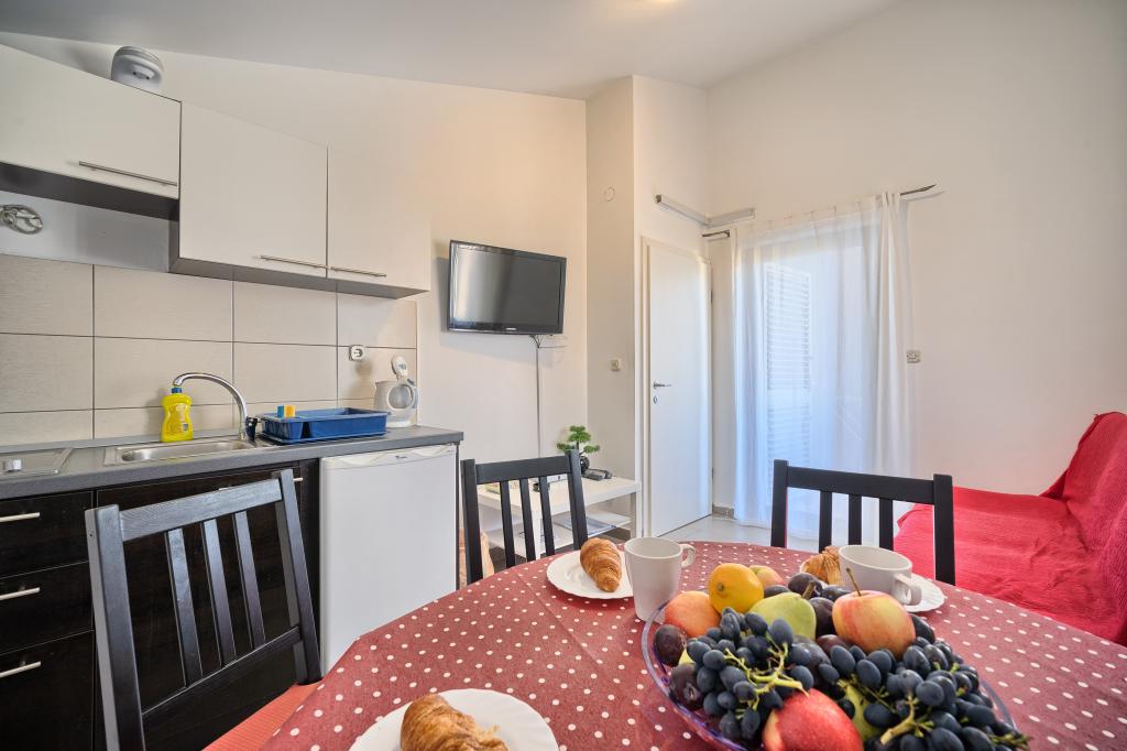 Residential tax is included in price.Ciovo Island will also offer a peaceful and secluded coves, but also places of entertainment, recreation and sport. The west side of the island is special because of the beautiful beaches and quiet coves, as well as exceptional facilities for fishing. On the east side is dotted with small beaches and places for relaxing and peaceful vacation. For the adventurous, it is recommended to rent a small motor boat and tour the island Ciovo waters and nearby islands given to the south side of Ciovo many hidden and secluded coves ideal for a quiet holiday. For those looking for sporting activities in Okrug Gornji are tennis courts where you can enjoy a "white" sport. The bay Mavarštica is a diving school with whose help you when diving able to enjoy the rich flora and fauna, crystal clear sea.