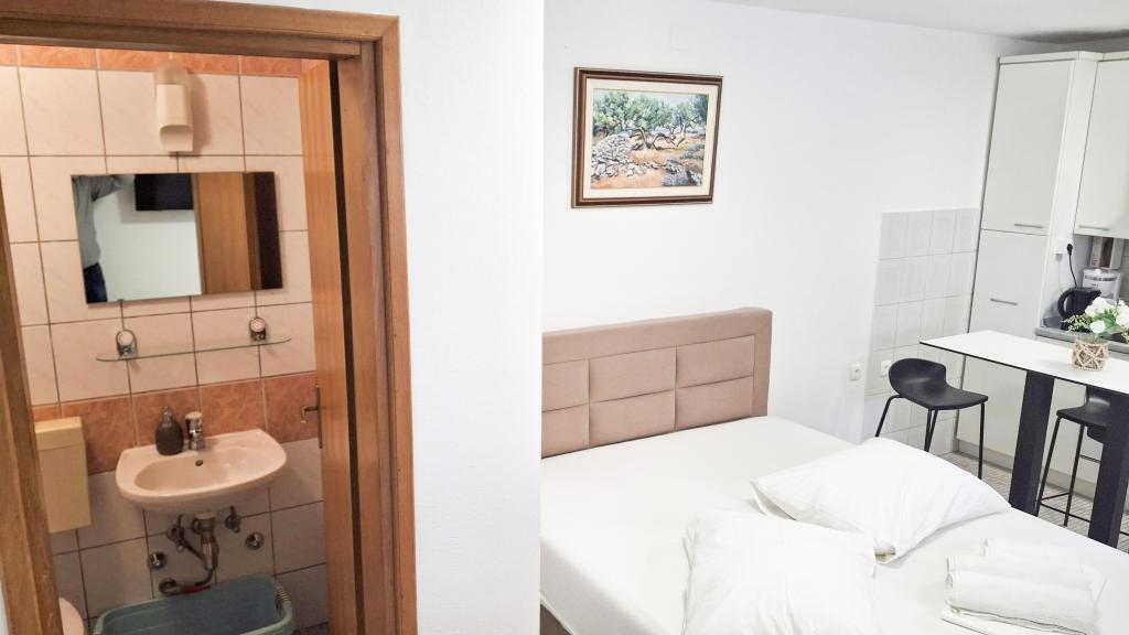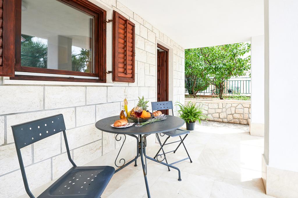 We were very satisfied with the accommodation, cleanliness, access to the sea, shops. The apartment has all the equipment you need. Everything is nearby. The bus station / taxi boat is also nearby. The taxi boat takes 15 minutes to Trogir and is a great adventure. The cafes are right next to the beach so that's a big five. Beautiful view of the sea from both terraces. The beaches are great. The owners are very kind and respond quickly to anything you need. The house also has a fantastic barbecue area that we often used. All in all, we are very satisfied with everything and if the road leads us this way, we will come again.
