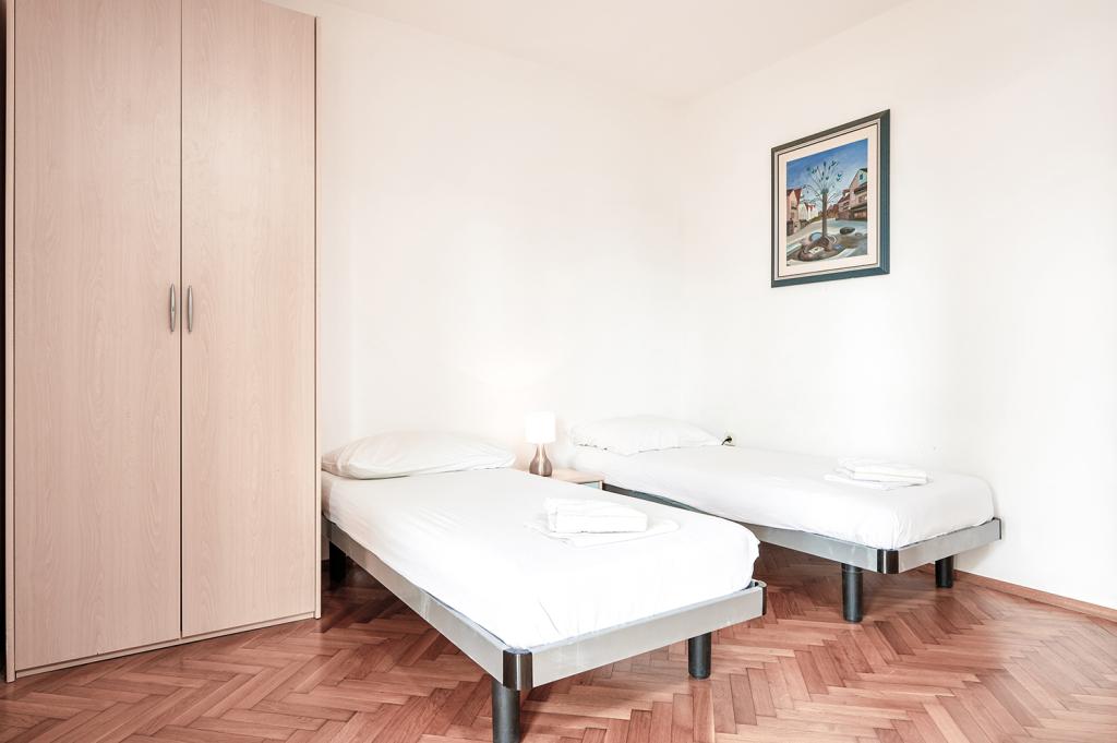 The apartment has a good location and great potential, but it should be well renovated to justify the price of accommodation in the high season, which is €150 per night! First of all, you should invest in internal sound insulation, because the noise between the apartments is unbearable. Usually, walking through the apartment, moving the chairs in the dining room, something accidentally falling on the floor and the like, creates a lot of noise, so a peaceful vacation cannot be expected in this apartment. The apartment is large and spacious, but for such a high price it is really poorly equipped. The air conditioner is loud and is only in one room. The kitchen is dilapidated, poorly equipped. The bathroom is average, nothing special. Furthermore, the apartment has only one bedroom, and the other is actually a living room/dining room in which, instead of a couch, there are some uncomfortable beds, the size of which is difficult for an adult to turn around, let alone get a good night's sleep. The only positive is the location, which is close to the beach, but that's not enough to make it worth the asking price. The host is kind, but he didn't have much of an impact on the complaints made to him about cleanliness and noise.