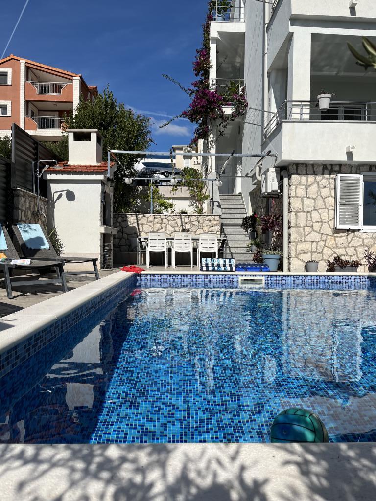 We had the pleasure of staying (one week in August ) at Villa Dani. Everything was fantastic. We stayed in all 3 apartements, All of them in perfect condition, well equipped with everything you need, nice and very clean and with a fantastic view. The lovely hosts gave us a warm welcome and made us all feel at home right away. We spent our days either at the lovely pool or at the rocky beach close to the villa. When not exploring Trogir or Split in the evenings, we enjoyed the Barbecue next to the pool. We hope to come back soon. Best vacation and highly recommended.