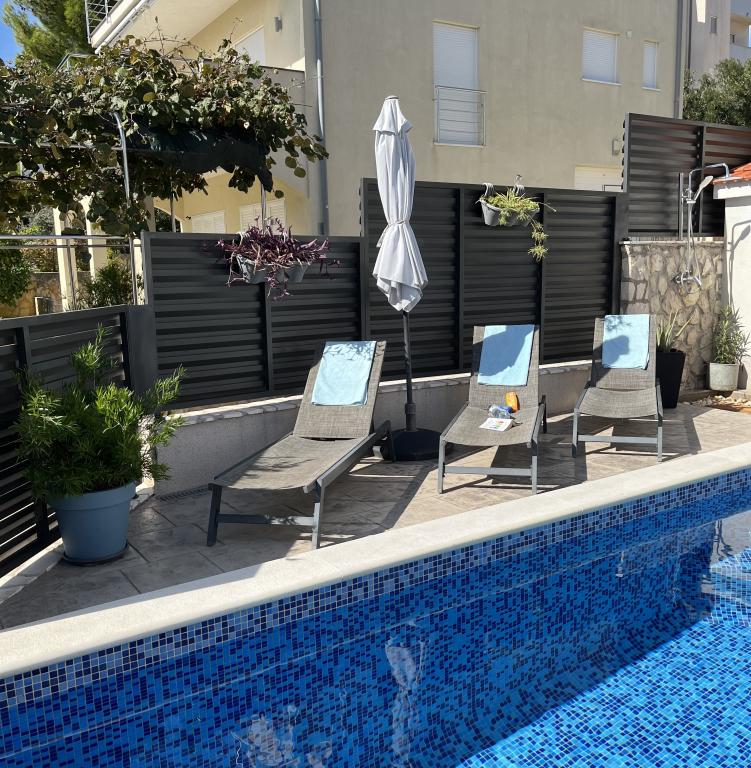 Holidays end of June and beginning of July 2023. Super place in a quiet and peaceful place on the island of Ciovo. Very close to the sea, walk to the nearest store approx. 10 minutes. and at high temperatures, which was the perfect time for a cold pifffko on the way. The host Darko is very open, very pleasant and always helpful. On site grill and swimming pool, deckchairs. The high standard of the fully equipped apartments - dishwasher, microwave, coffee maker and even a washing machine in the bathroom. I heartily recommend this place.