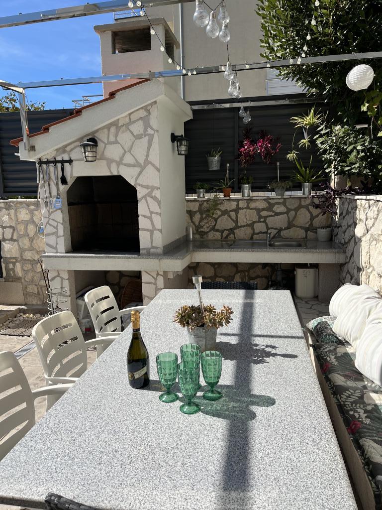 A wonderful place to relax. Very close to the sea, an hour's walk to beautiful Trogir. Apartment equipped with everything you need, very clean and well-kept. Swimming pool and grill at guests' disposal. Parking space in the yard. Host Darko very nice and helpful. I recommend.