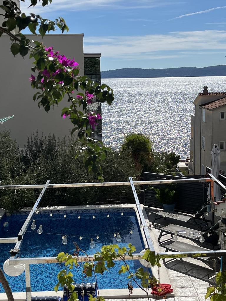 Everything was excellent. The apartment is new, tidy, clean, the bed is very comfortable, the kitchen is equipped like no other before, the pool is very nice and clean. Deckchairs, parasol, table, shower by the pool. The apartment and the house itself are exactly as shown in the pictures and in the rental offer. The sea is a few steps from the apartment, the water is very clean and warm. In short, top, excellent, as well as the owner. He makes you feel like you're at home. The sea view is just the icing on the cake. Really worth a visit. More than 5.
