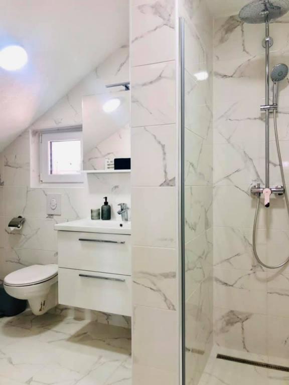 We rented the top flat and we couldn't be more happy. The space is clean and there is everything you need. The view from the terrace is amazing!!! There are a dinner table and a lounge set out there. A very comfortable bed, dishwasher, nice big shower and washing machine are making your holiday easy. The pool is making it very pleasant, and in that garden area there are also a shower so that you can shower before getting in the pool. 60 meter from the house, the sea awaits you, lovely!!! A minimart is close by and several cafés and nice restaurants. Make yourself a favor and rent this really nice place for a very, very good holiday. Darko and Niclas are the best host's you can wish for. They are attentive, friendly and always there to give you good tips on do's and don't when you are in Croatia.