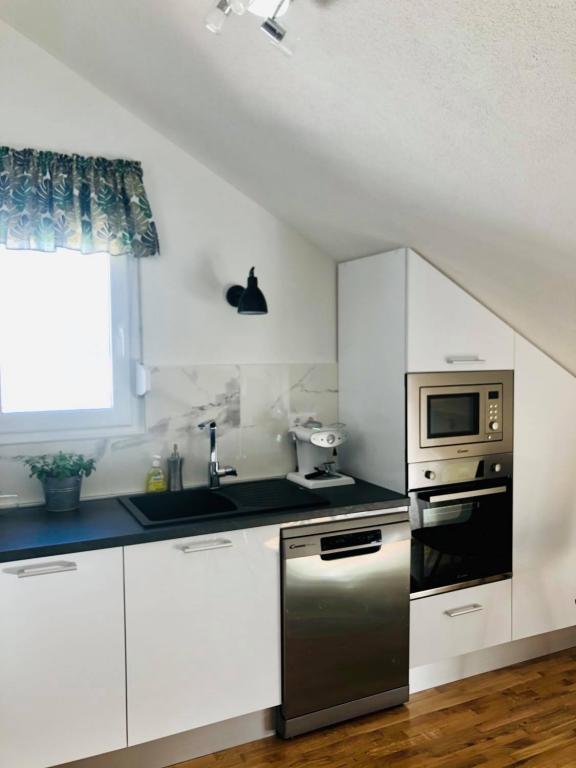 The pictures already promised us a great apartment, but when we arrived we were even more enthusiastic. It is a clean and lovingly furnished apartment with a wonderful view of the nearby sea. Darko is an attentive and very friendly host. The apartment is equipped with everything you need for a stay. We would highly recommend the property and would love to come back again.