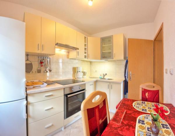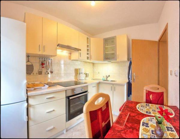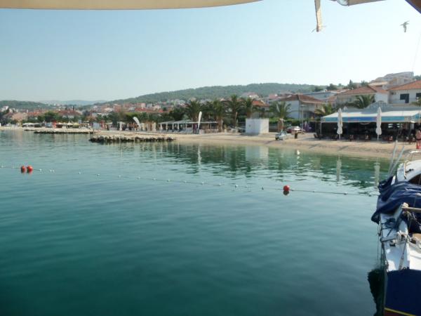 The apartment is great for couples, clean, tidy and equipped with everything you need for a comfortable stay. The balcony/terrace is a great advantage as it is shaded and ideal for relaxing. There is also a barbecue area available, which was particularly practical for us. The hosts are extremely polite, kind and always available, but unobtrusive, which we really appreciated. The beach is rocky and concrete, which suited us perfectly, without being too crowded. There are also pebble beaches nearby for those who prefer that. The center of Okrug is relatively close and has everything you need, and Trogir is easily accessible by car or boat. All recommendations for the apartment and the hosts. We would love to come back again, but now we need capacity for more people.
