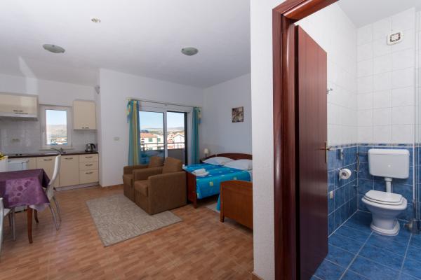 We wish you a warm welcome in the sunny paradise holiday in Trogir. We are located 7 km from the airport "Split" and 3 km from the town of Trogir. In this oasis of beauty and pleasure we would like to introduce pearl "Villa Fumija" which offers luxurious apartments and studio apartments. Forget Radic family offers its guests for years with the recognizable quality of service and hospitality obiteli with many years of experience with. With a "Ville Fumia" offers to all its guests information and organizing catering services to make their stay comfortable and complete "Villa Fumija" is 100 m away from the sea and has private parking for cars and buses.
