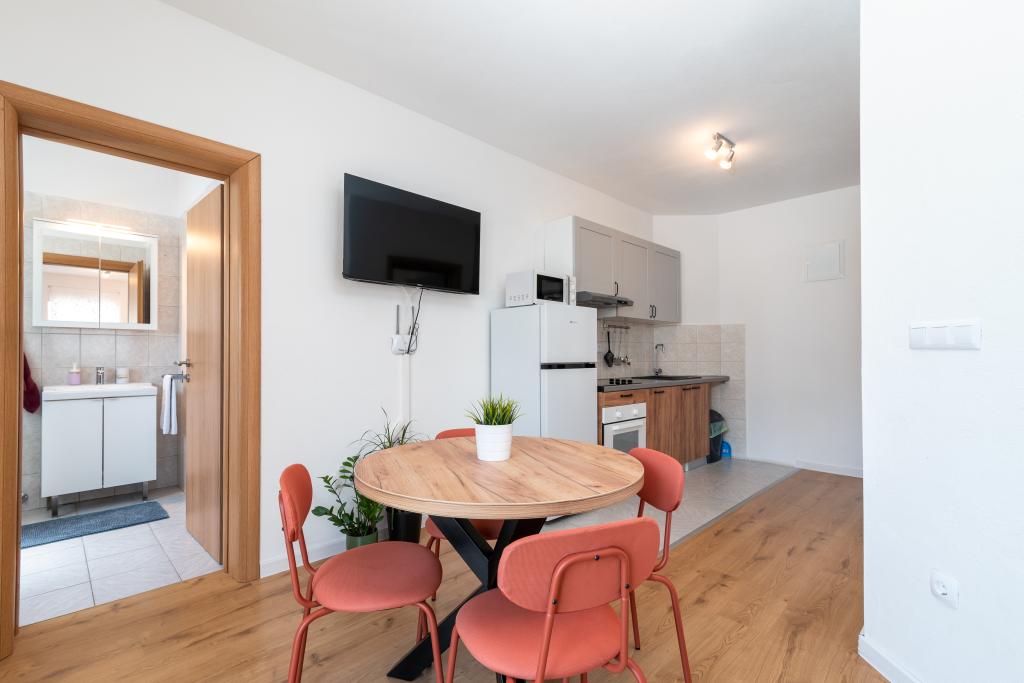 A fantastic apartment in an amazing location. That’s what you get when you book your stay here. The apartment is just 300 meters from the area’s main beach, the Copacabana, so you can be by the sea in 3 minutes with a quick walk from the apartment. And what a beach! It’s over one kilometer-long and offers chances for you to lie back and relax or get involved in some water sports or children’s activities. It really is the beating heart of the area, especially in summer. And choosing to stay in this apartment puts you within a few minute’s walk of all the daytime activities and lively nightlife that makes this place so popular with locals and tourists alike. There are bars and restaurants and markets to enjoy around the area. You’ll also find secluded bays and coves, so go explore if you want to find somewhere a little different. Trogir old town—a place so beautiful it’s protected by UNESCO—is just 2 kilometres from the apartment, a 3-minute drive or 20-minute walk away.