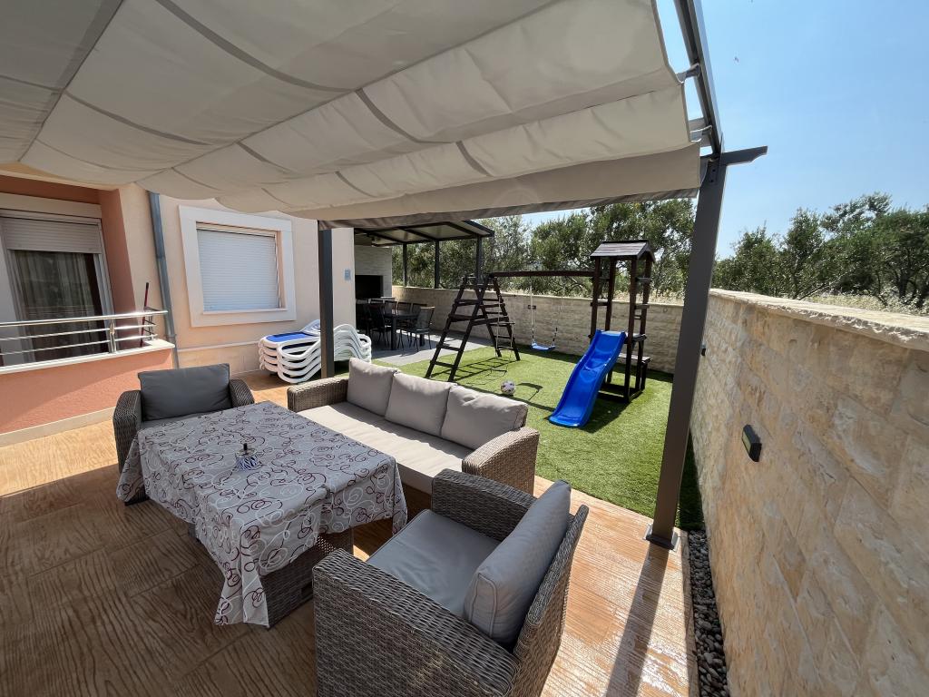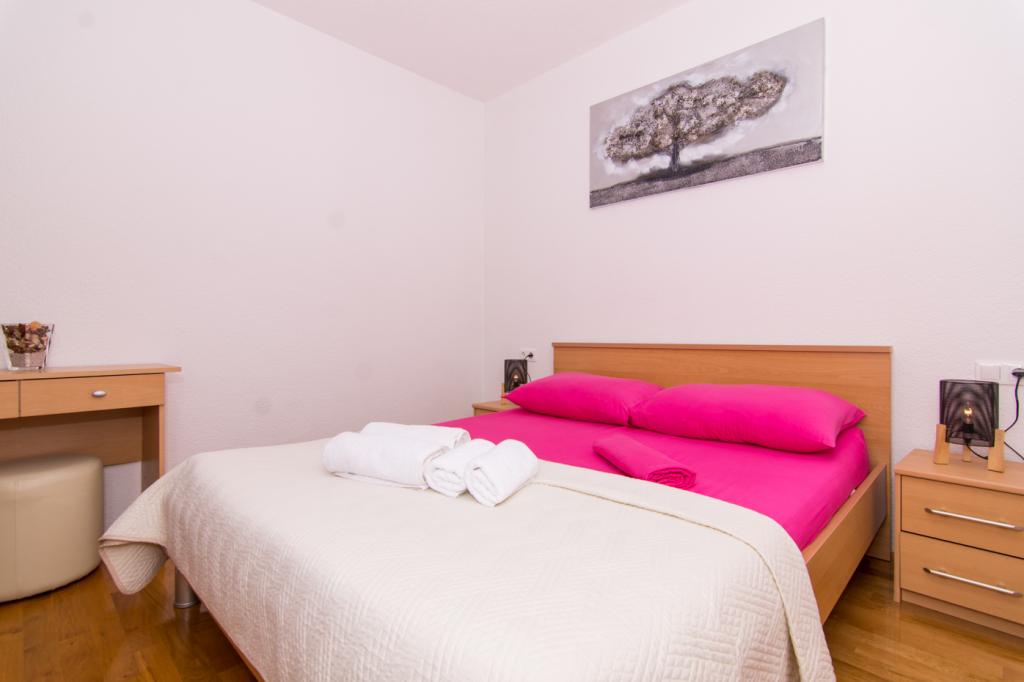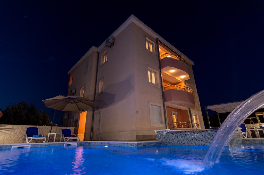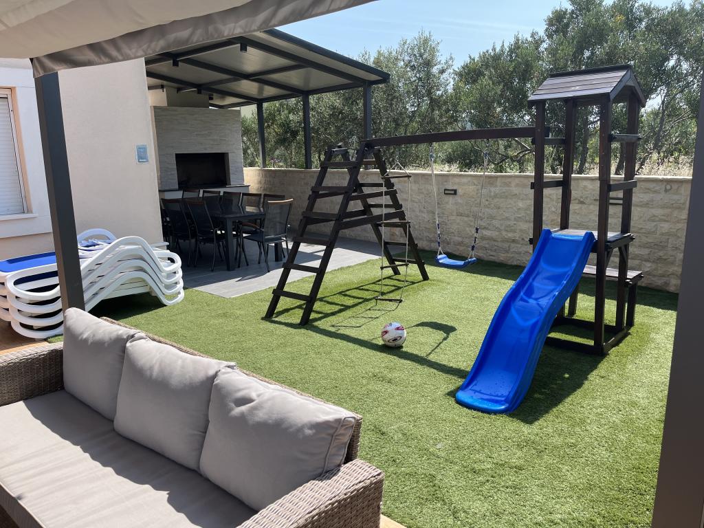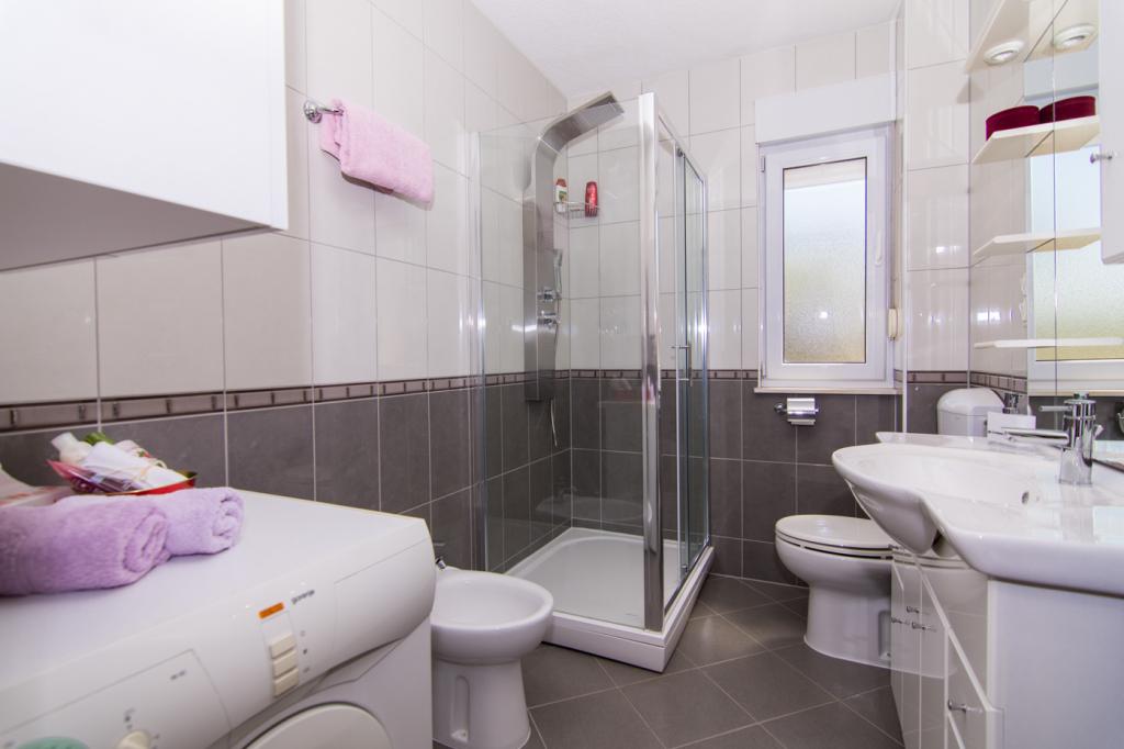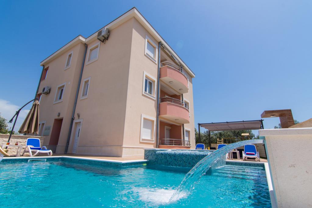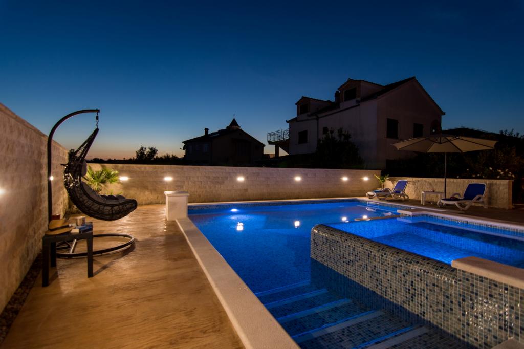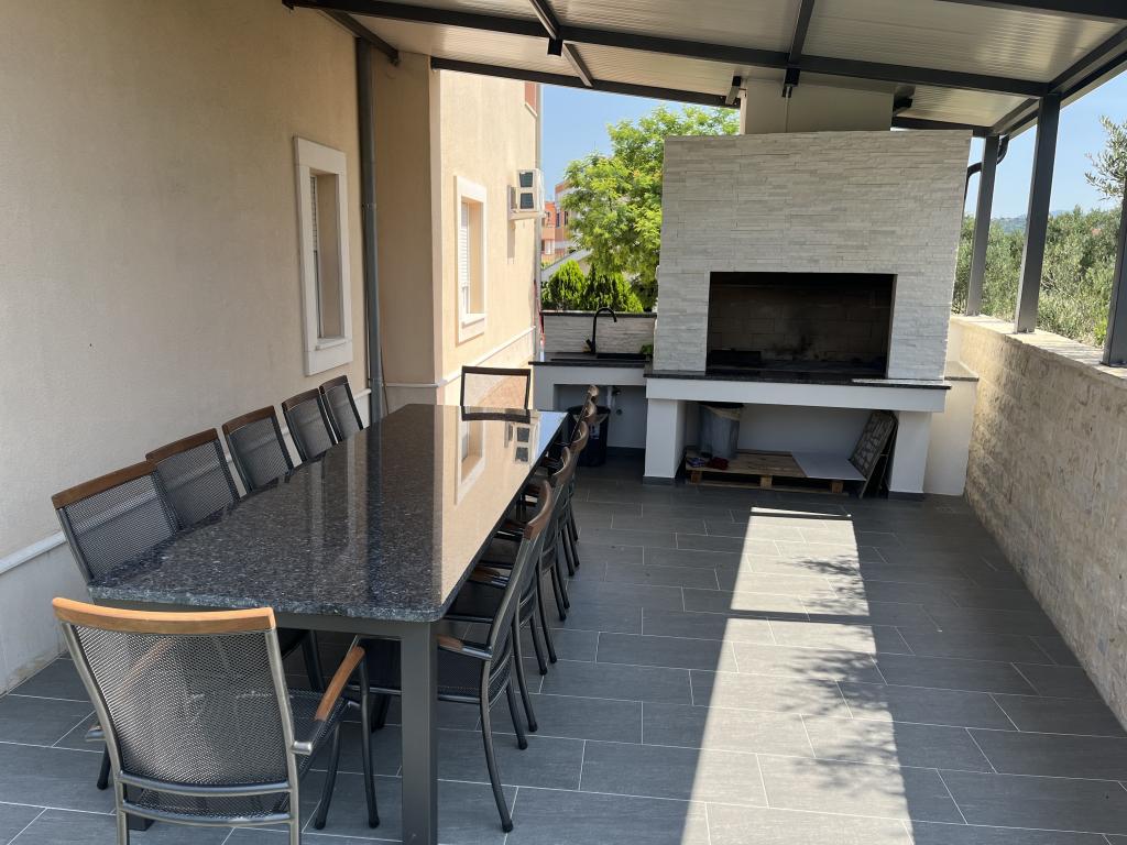Modernly equipped, air-conditioned, Apartments Villa Peky are located in a family house on the island of Čiovo in Okrug Gornji. Two A2 2 apartments and one 4 2 apartment can host up to 14 people. There is a parking lot for guests in front of the house. At the back of the house there is a heated swimming pool with a jacuzzi, a children's playground and a covered outdoor grill with a large table. The most popular destination in the Trogir region is Okrug Gornji on the island of Čiovo with its beautiful beach. The old village of Okrug is located on the top of a small hill at the bottom of which is a fishing port, about 4 km from the center of Trogir, or 8 km from Split airport. On the beach in Okrug Gornji you can rent a scooter, jet ski, you can enjoy parasailing and other activities at sea. During the summer in Okrug, you can also enjoy the shade of cafes or restaurants that offer Dalmatian specialties in addition to other dishes. The diving school Trogir Diving Center in Mavarčica will introduce you to the beauties of the undersea of central Dalmatia.