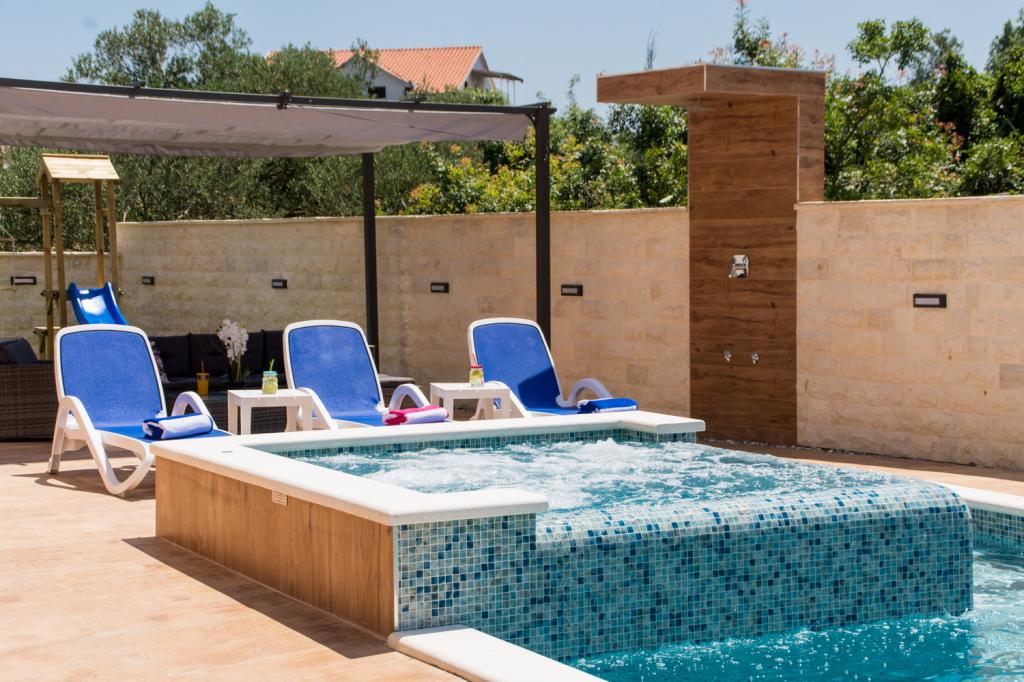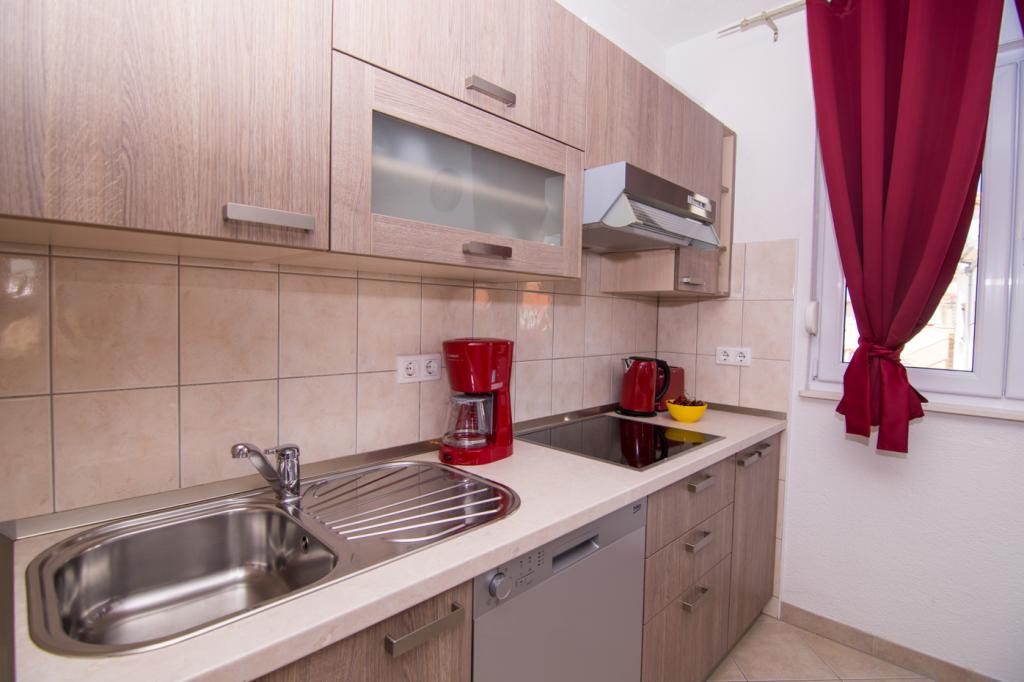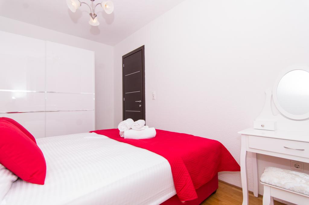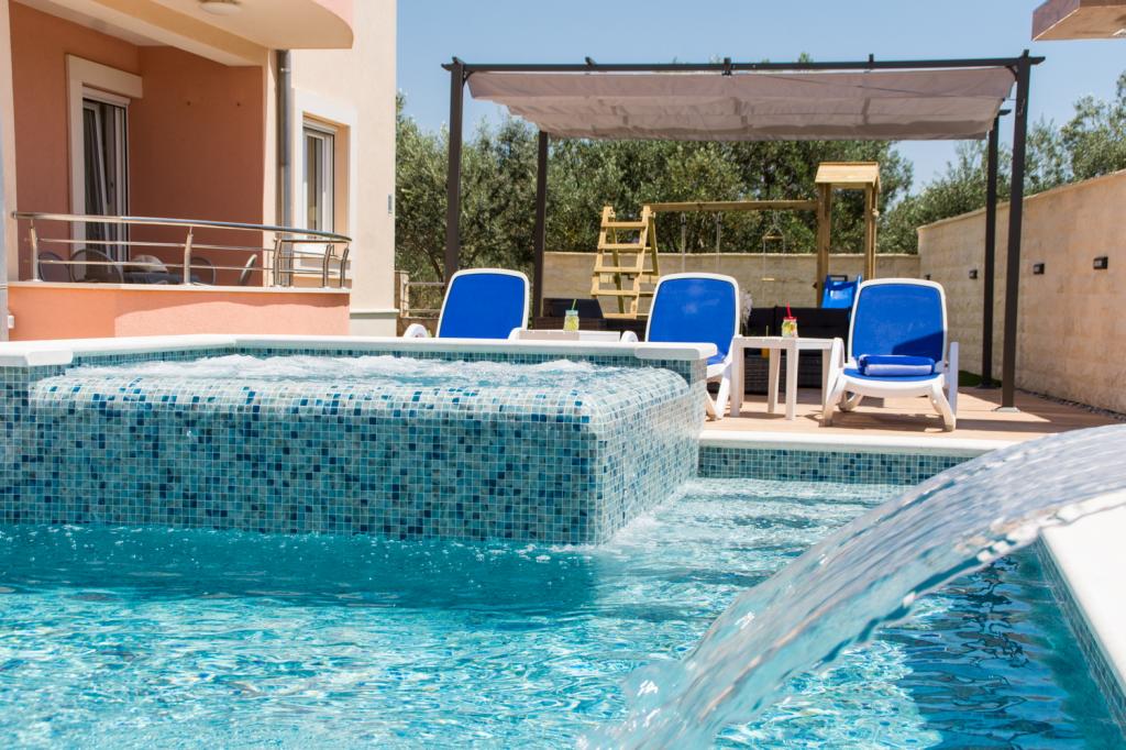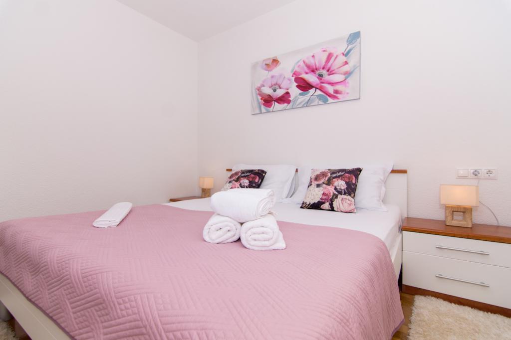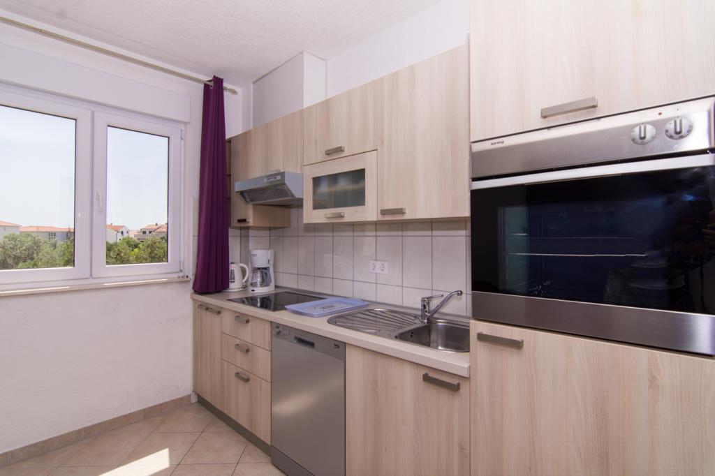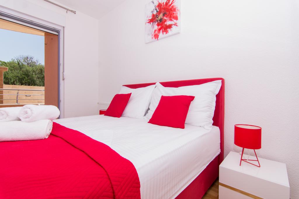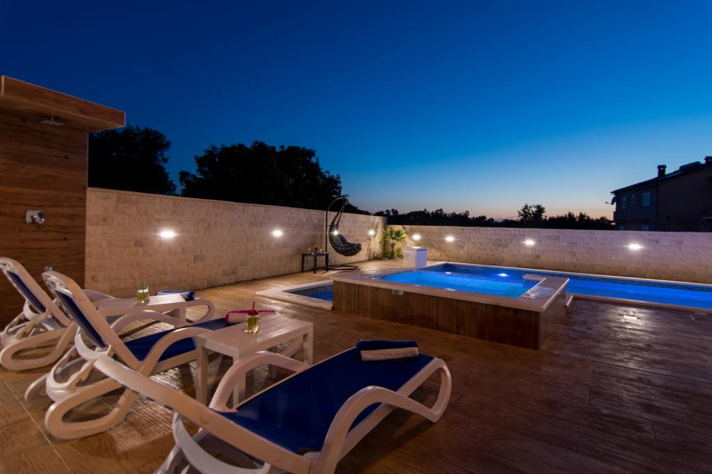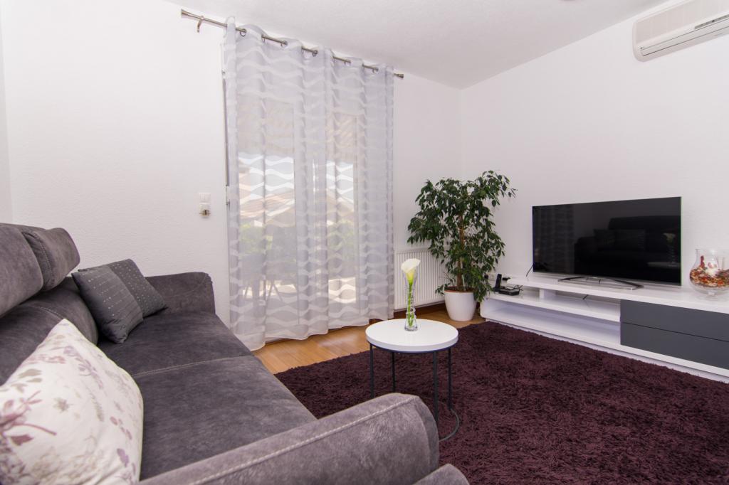 Modernly equipped, air-conditioned, Apartments Villa Peky are located in a family house on the island of Čiovo in Okrug Gornji. Two A2 2 apartments and one 4 2 apartment can host up to 14 people. There is a parking lot for guests in front of the house. At the back of the house there is a heated swimming pool with a jacuzzi, a children's playground and a covered outdoor grill with a large table. The most popular destination in the Trogir region is Okrug Gornji on the island of Čiovo with its beautiful beach. The old village of Okrug is located on the top of a small hill at the bottom of which is a fishing port, about 4 km from the center of Trogir, or 8 km from Split airport. On the beach in Okrug Gornji you can rent a scooter, jet ski, you can enjoy parasailing and other activities at sea. During the summer in Okrug, you can also enjoy the shade of cafes or restaurants that offer Dalmatian specialties in addition to other dishes. The diving school Trogir Diving Center in Mavarčica will introduce you to the beauties of the undersea of central Dalmatia.