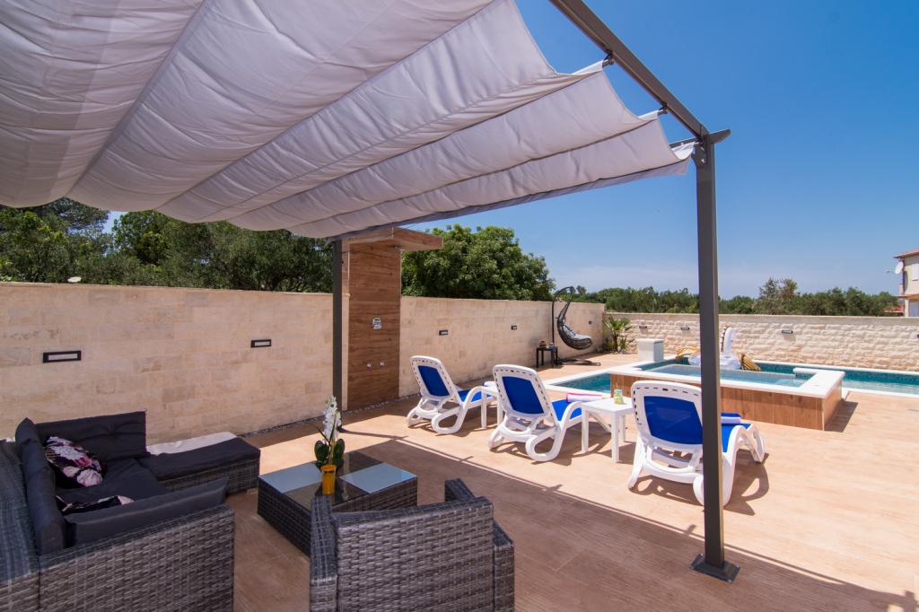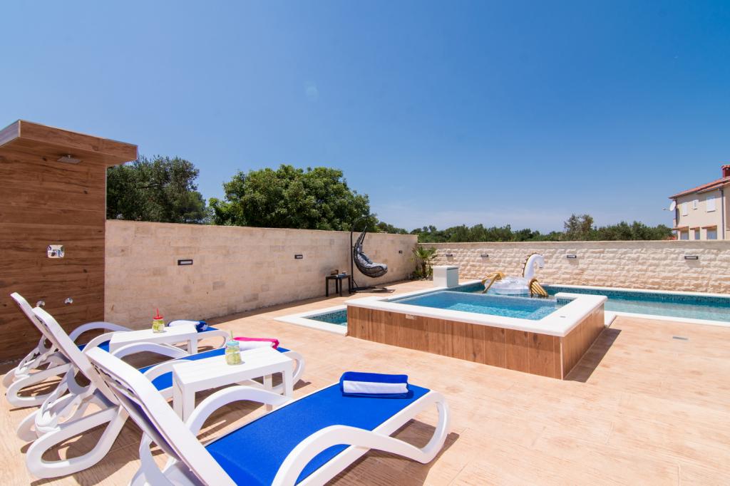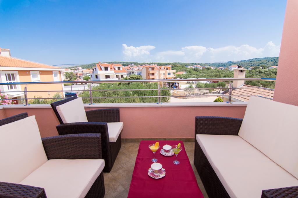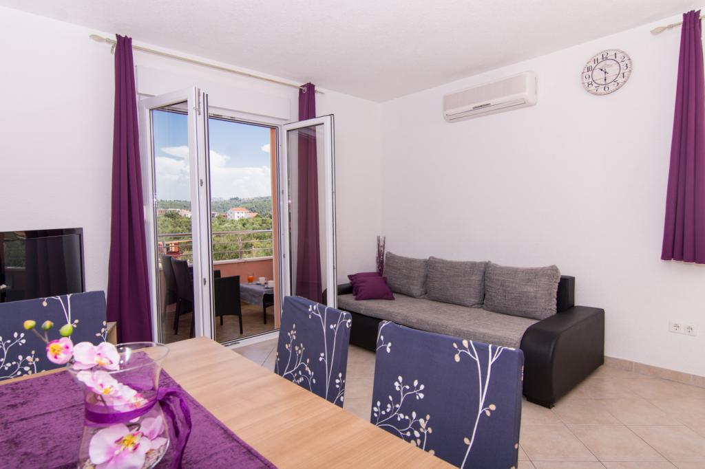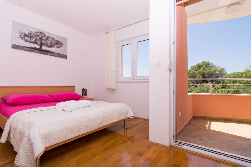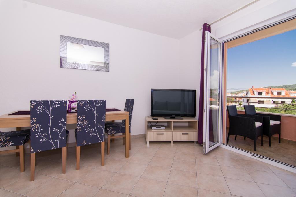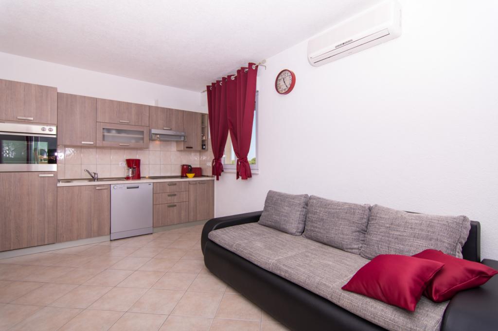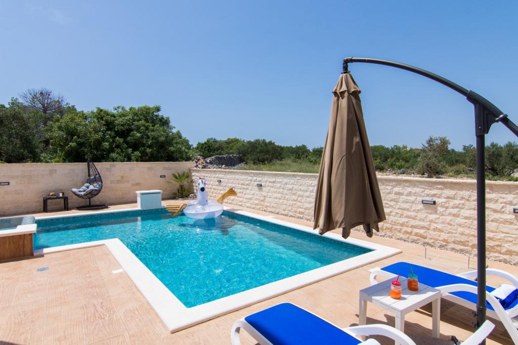 Modernly equipped, air-conditioned, Apartments Villa Peky are located in a family house on the island of Čiovo in Okrug Gornji. Two A2 2 apartments and one 4 2 apartment can host up to 14 people. There is a parking lot for guests in front of the house. At the back of the house there is a heated swimming pool with a jacuzzi, a children's playground and a covered outdoor grill with a large table. The most popular destination in the Trogir region is Okrug Gornji on the island of Čiovo with its beautiful beach. The old village of Okrug is located on the top of a small hill at the bottom of which is a fishing port, about 4 km from the center of Trogir, or 8 km from Split airport. On the beach in Okrug Gornji you can rent a scooter, jet ski, you can enjoy parasailing and other activities at sea. During the summer in Okrug, you can also enjoy the shade of cafes or restaurants that offer Dalmatian specialties in addition to other dishes. The diving school Trogir Diving Center in Mavarčica will introduce you to the beauties of the undersea of central Dalmatia.