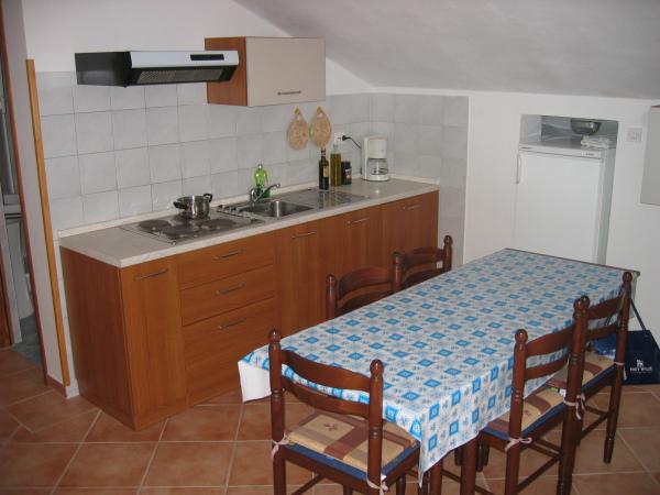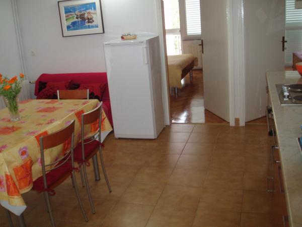 Family house in a quiet and attractive location with 5 apartments: 3 AP with one room for two people, ground floor, first floor and second floor, 1 AP with two rooms for 4 people on the second floor, sea view, 1 AP with three rooms for 5 or 5 +1 people, ground floor, surrounded by a garden and terrace, not far from the city center (5 -7 min) and the beach (3 - 4 min), with private parking, and a bicycle garage. The apartments are spacious (40 m2 - 80 m2), fully and modernly equipped, have air conditioning, internet, balconies and a terrace. The apartments on the 2nd floor have a sea view. The apartments on the mezzanine are located in a garden with lots of greenery and flowers. In the yard there is table tennis, swing, barbecue, stone monuments. There are restaurants and a market nearby. The long and sunny beach is sandy and rocky. There are pine and olive trees along the beach. Nearby are tennis courts, bicycle paths, sailing, diving, water skiing, excursions. Boat rental. The Orbanić family wishes you a pleasant stay in Cres.