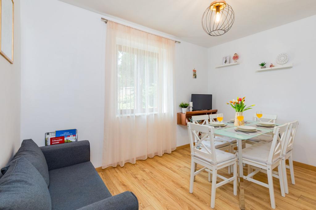 Three-bedroom apartment on the ground floor of a family house in a quiet part of Crikvenica. The apartment has a fenced yard with parking for two cars. The property is fully equipped with everything you need for a carefree vacation, wifi, air conditioning, washing machine, hair dryer, coffee maker, toaster, cot and baby high chair. You can enjoy the spacious terrace and there is a barbecue available for your use. The apartment is only 700 meters from the city center and the beach. It takes about 10 minutes to walk to the city, but at least 15 minutes to return. There are numerous restaurants within walking distance of the apartment, which, in addition to a diverse gastronomic offer, also offer a rich nightlife. The hosts are available for any information.