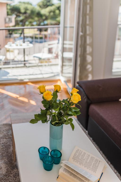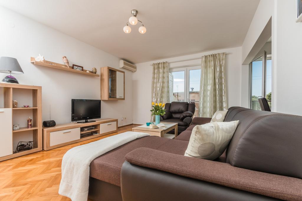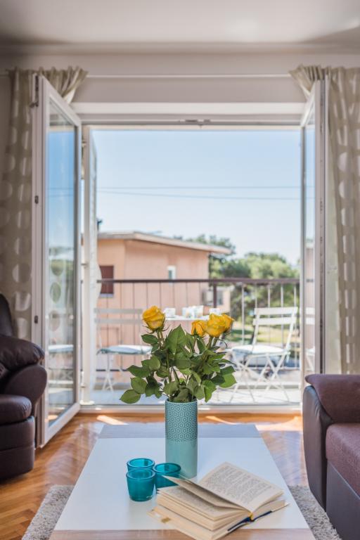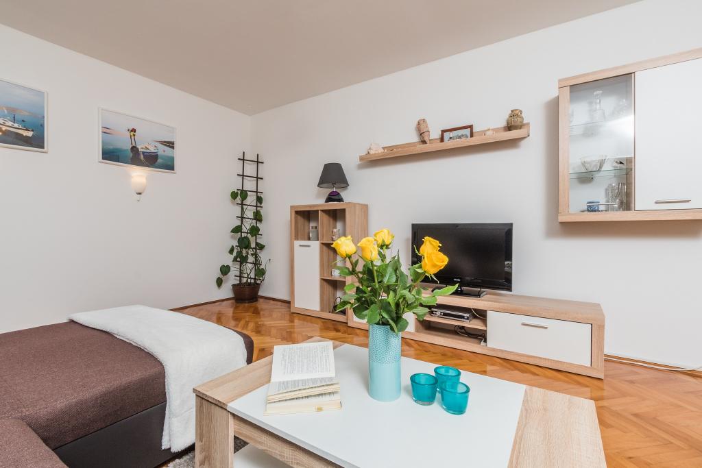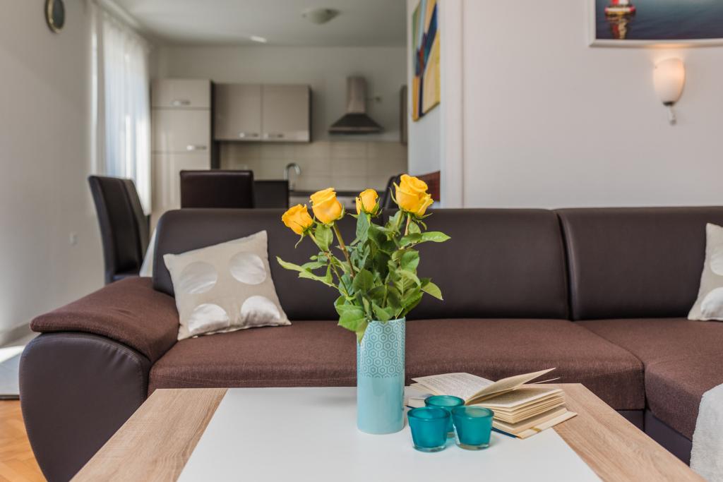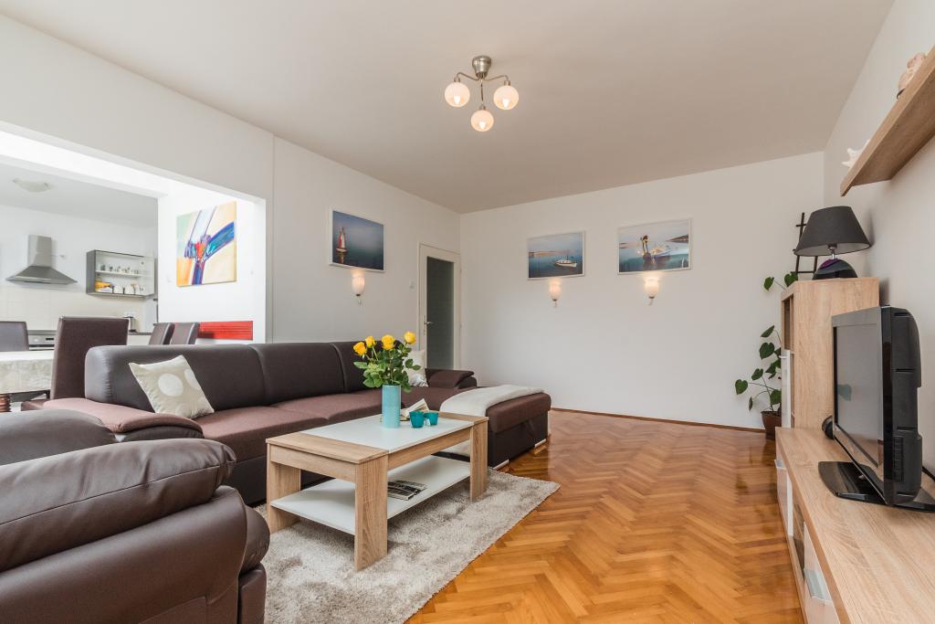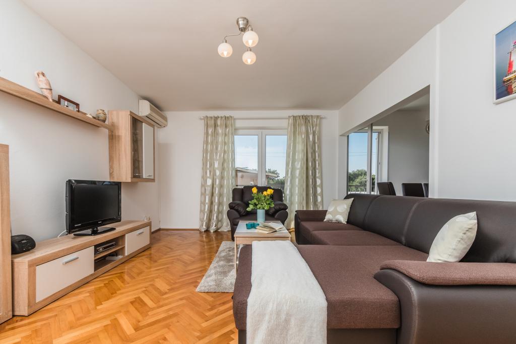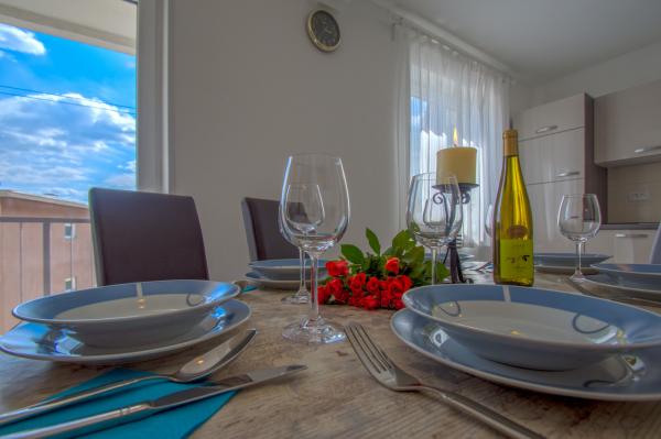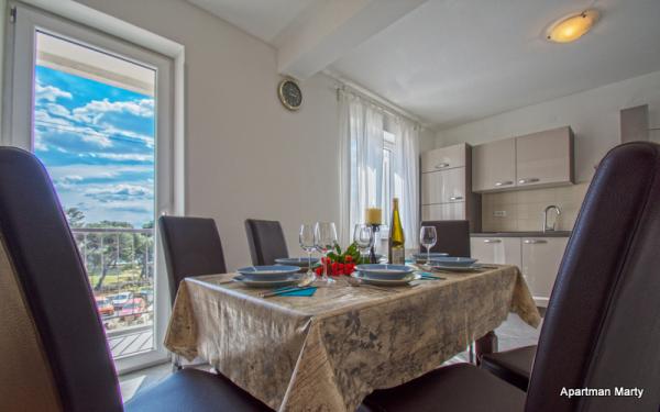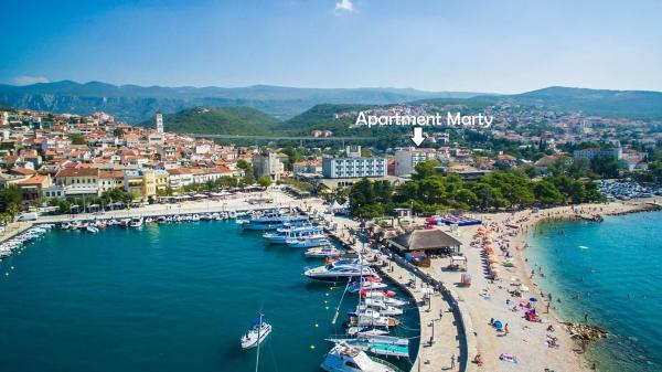 Apartment Marty is located in the center of Crikvenica! The apartment is 76m2 and is located in a residential building, on the 2nd floor, and within the apartments of less than 50m are located post office, bank, shops, bus station, beach. It is very nice and comfortable, and consists of a fully equipped kitchen, dining room, bathroom with toilet, toilet, living room, two bedrooms and a balcony. Parking is public.