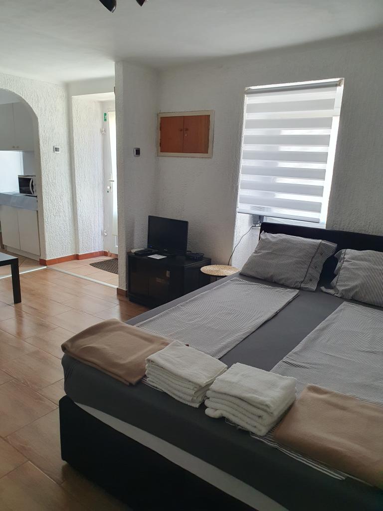 Apartment Nevia is located near the city center, only 5 minutes walk to the city square and 3 minutes walk to the beach. The studio apartment is located on the ground floor and has a living-room with a sofa bed, a kitchen with a dining area and a bathroom with a shower. The advantage of the apartments is equipped with TV, Wi-Fi, air conditioning, free parking and a minimum distance to shops, pharmacies, banks, post office, bus station, restaurants, cafes, entertainment and city events. Beaches in the immediate vicinity are pebbly, sandy, concrete and rocky. We are looking forward to your arrival!