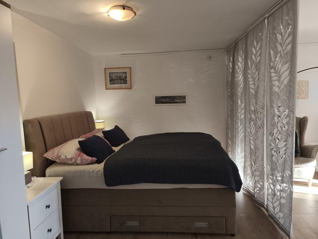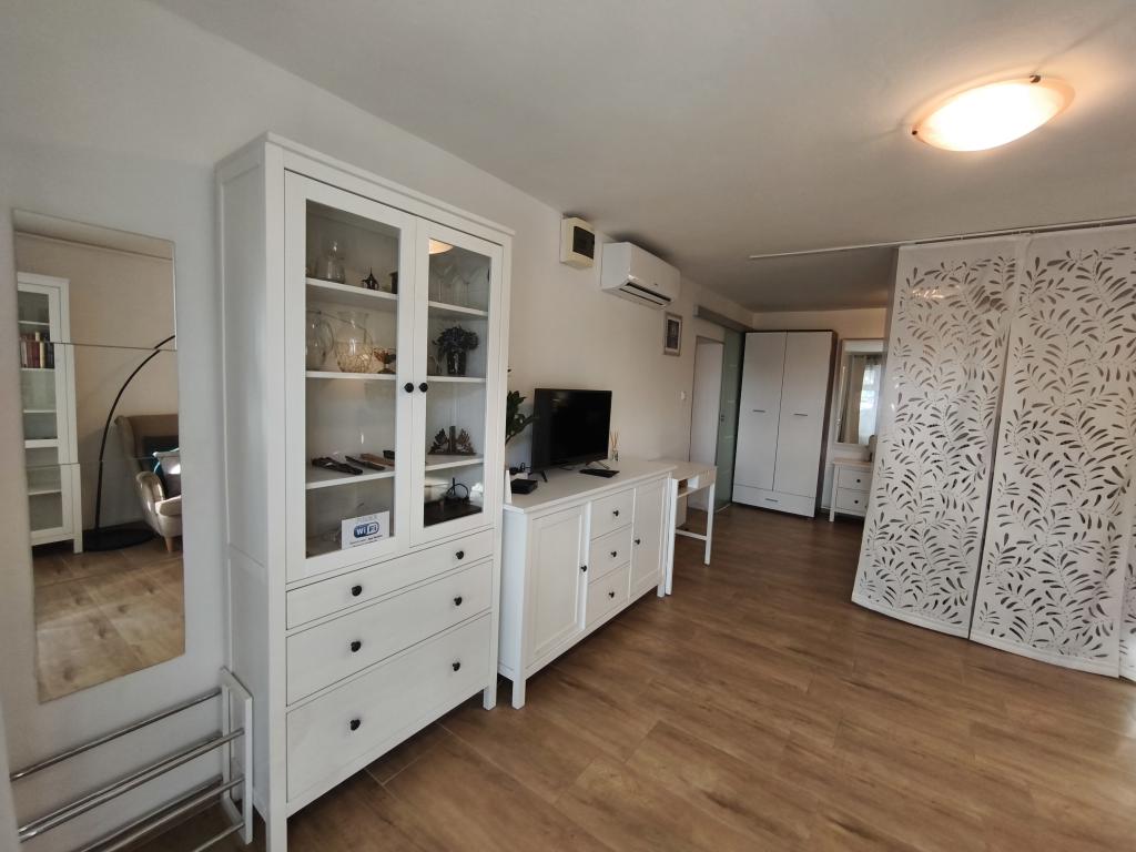 Studio apartment, first row to the sea. Air conditioning, Wi-Fi parking. Beach, shops and restaurants within 100 meters. The bus station and the city center are a 3-5 minute walk away.