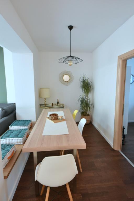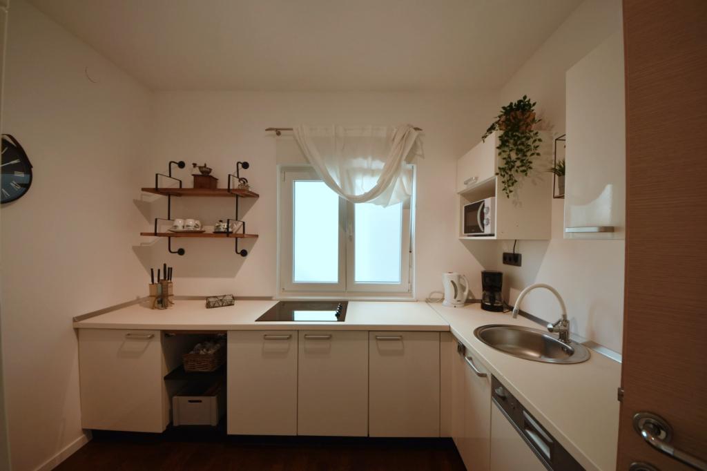 Nicely decorated and cozy apartment. It has everything you could need - enough dishes, washing machine, clothes dryer, iron, hair dryer, enough towels. Everything is nearby and easily accessible. Shops and the market are a 5-minute walk away. Numerous cafes and restaurants are located right below. The beach with a mixture of small and larger stones is right across the street. It is sandy, a 5-minute walk away. What may be a problem for some is climbing to the 3rd floor and occasional noise in the late hours. All in all, we were very satisfied and would come back again (family with two children)