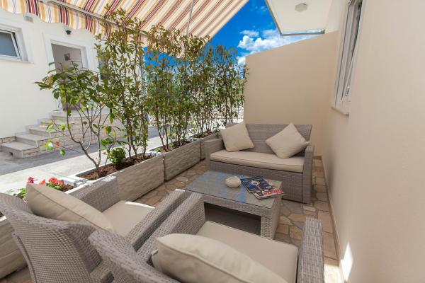 House Bujan are situated 450 m from the sandy beach. Its perfect for children. There are 3 apartments. All apartments are with aircondition, internet, parking place and barbecue in yard.