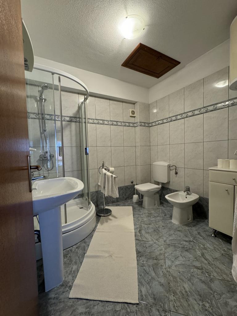 Dear guests, climate change has arrived. Summers are getting warmer, choose accommodations near the sea such as the Tea Katnić apartments. Don't let yourself be stuck looking for a parking space or walking 10-20 minutes uphill to your accommodations during the heat. We offer you all air-conditioned rooms, just 5 minutes from the beach and the sea. Enjoy your vacation and feel at home. We are located next to the Kaštel Hotel and the Church of the Assumption of the Blessed Virgin Mary. There is a pebble beach nearby, suitable for small children. The apartments are suitable for families with children.