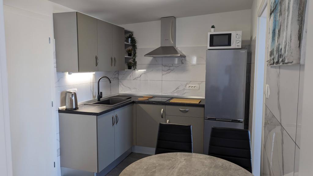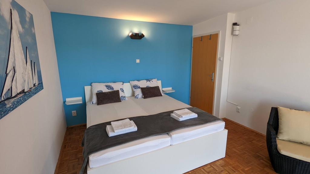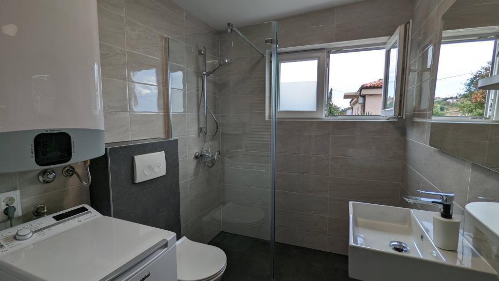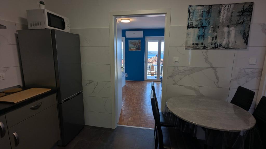 Beautiful accommodation, with an even more beautiful view of the sea. It's the most beautiful in the morning when you wake up and go directly to the terrace with a view of the sea! Everything you need is nearby, the beach is beautiful with showers, ideal for small children. You have everything you need in the accommodation. The owners are very friendly with excellent advice on where to go and what to see. All recommendations