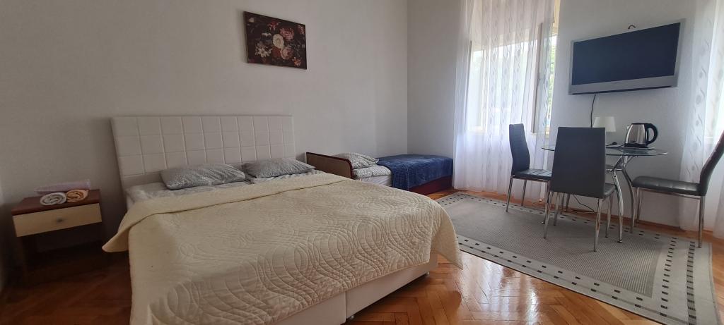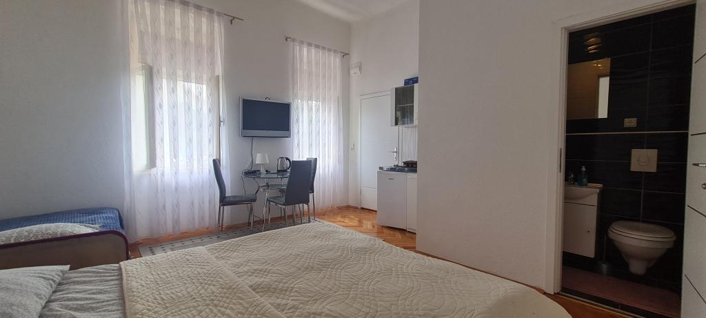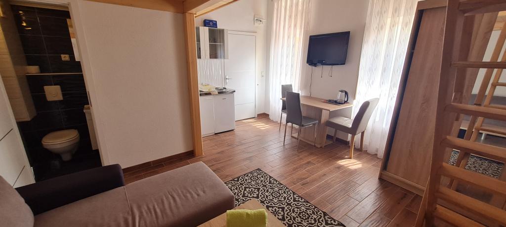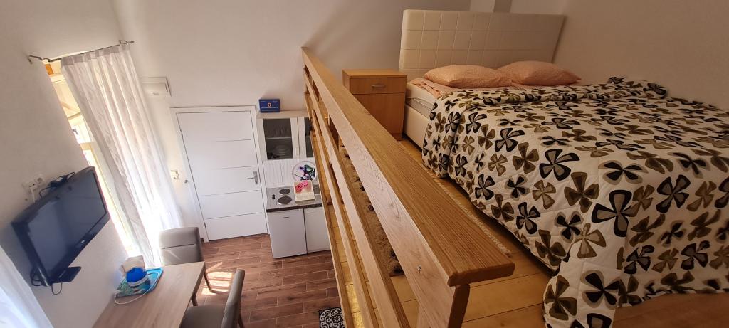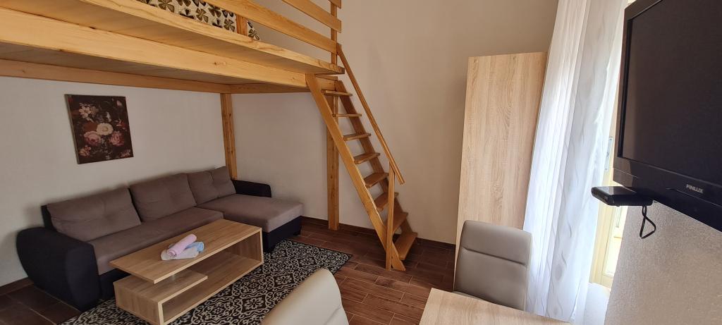 The new and modernly equipped Apartments Sara are located in a quiet area, only 200m from the center of Crikvenica. Due to its excellent location, all city amenities are within a 5-10 minute walk (beaches, restaurants, bars, shops...). Two studio apartments on the ground floor of the building are arranged on two levels: in the lower part there is a spacious living room, a kitchen with a table for serving meals and a bathroom with a shower, while the bedroom with a double bed is located on the gallery. The remaining two studio apartments on the first floor of the building each contain 3 beds, a kitchen with a table for serving meals, and a bathroom with a shower. All apartments are equipped with air conditioning, satellite TV, WLAN Internet, while the kitchens are equipped with hobs, fridges, kettles and all necessary dishes for preparing and serving meals.